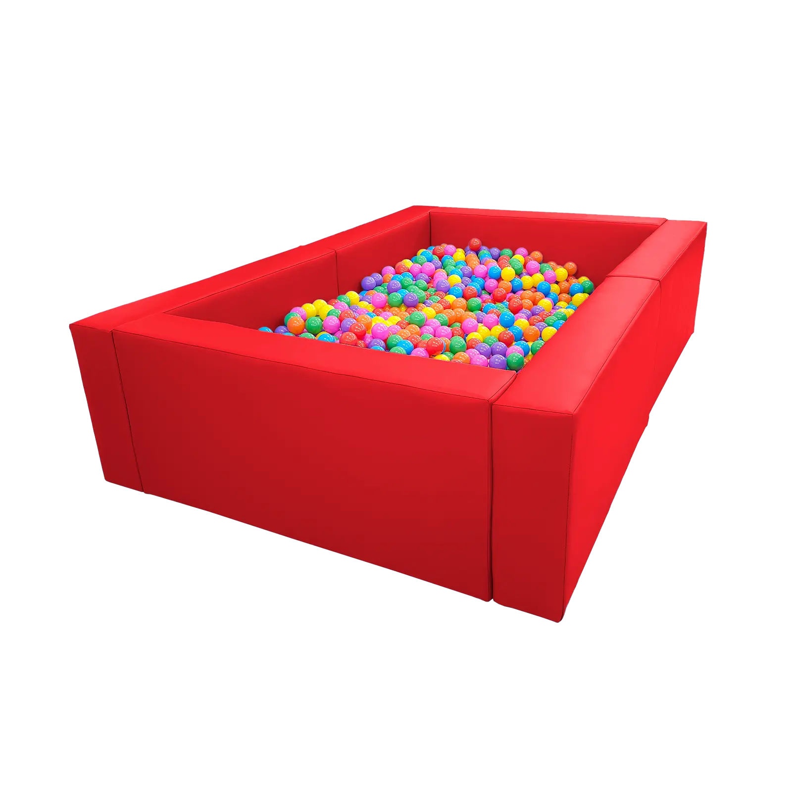 Basen na stelażu 2 x 3 m, wys. 60 cm z KODURY – basen wykonany jest na drewnianym stelażu, pokrytym pianką poliuretanową i materiałem KODURA (tkaniną kaletnicza), która zapewnia długą trwałość użytkowania. W komplecie 4000 piłeczek plastikowych o średnicy 7 cm.