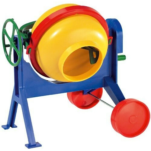 Kolorowa betoniarka w atrakcyjnych odcieniach czerwonym, zielonym, żółtym i niebieskim przyciąga uwagę dzieci.