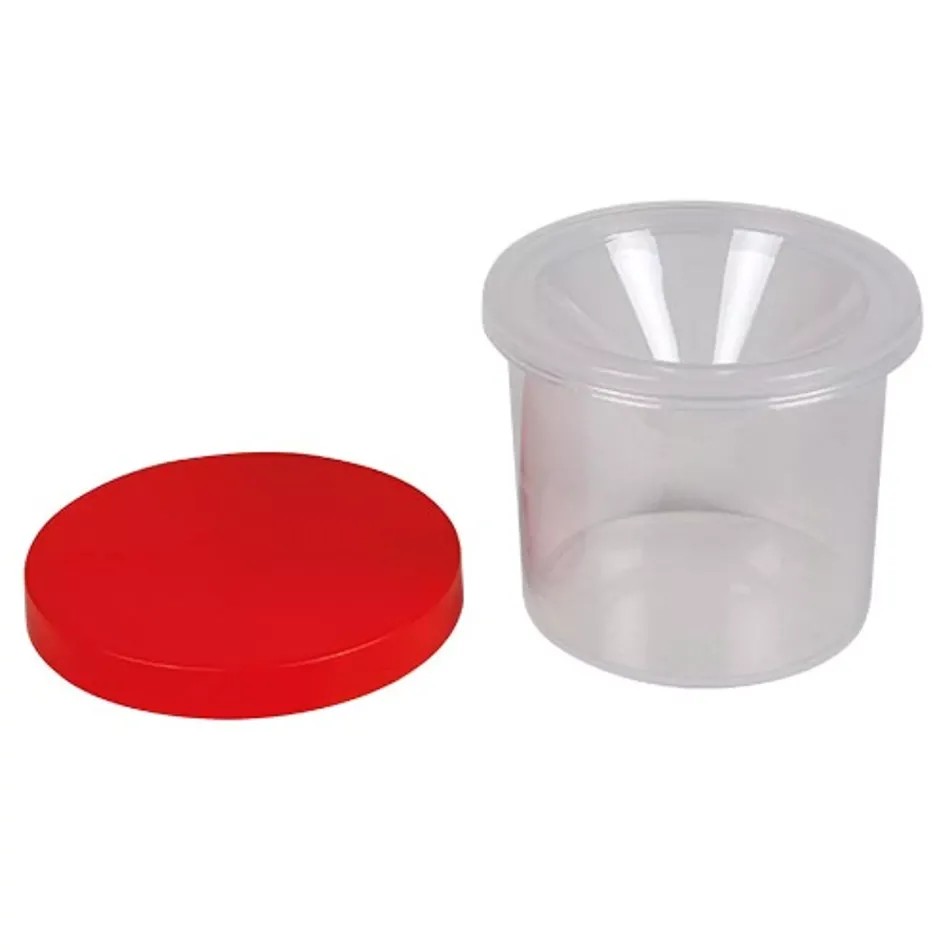 Praktyczny kubeczek na wodę do farb z pochyłym wnętrzem i szczelną pokrywką to niezastąpiony pomocnik każdego małego artysty. Dzięki przemyślanej konstrukcji, nawet jeśli pojemnik się przewróci – woda lub farba nie wyleją się.