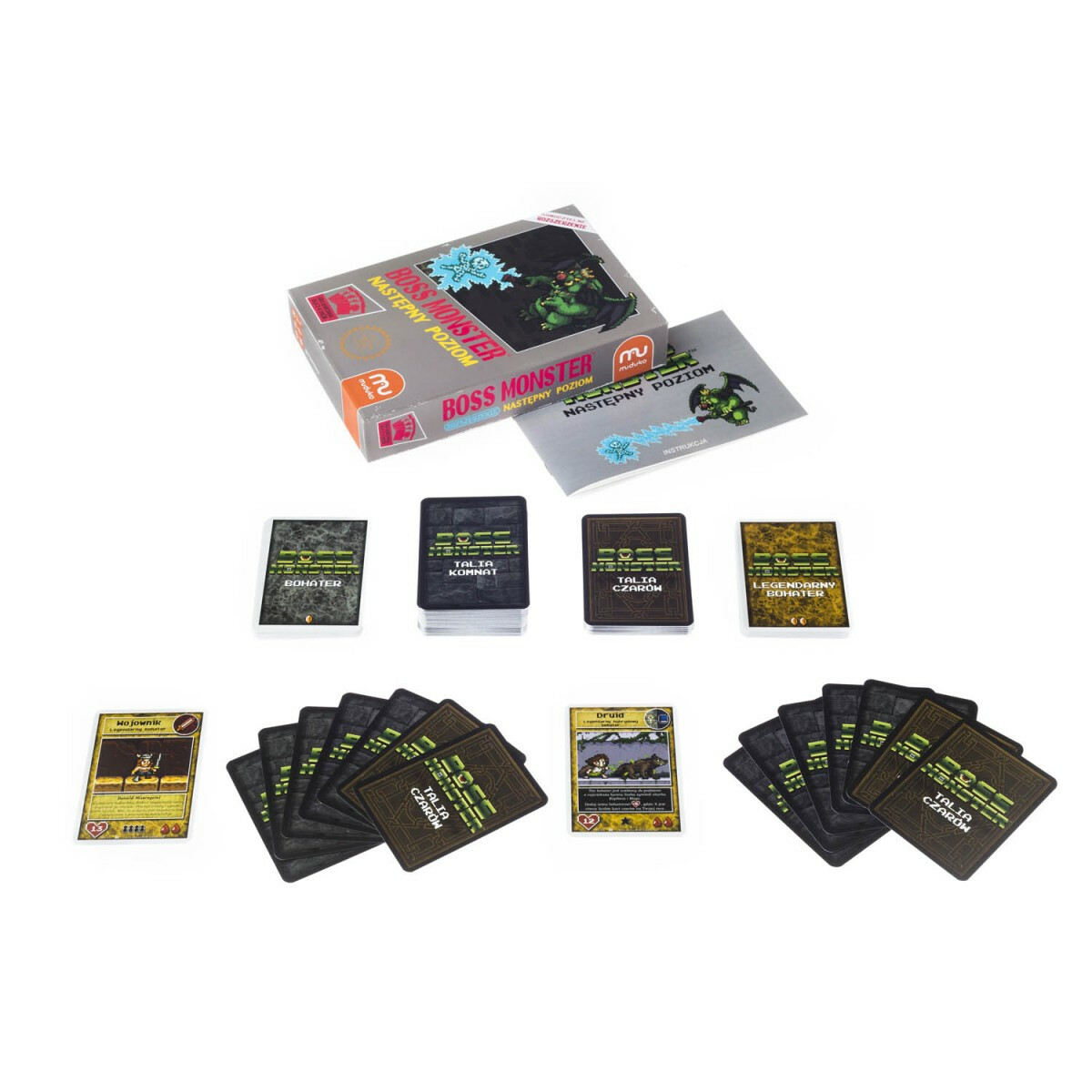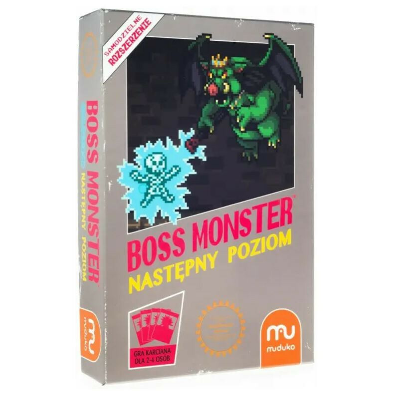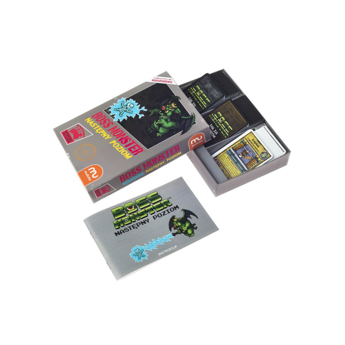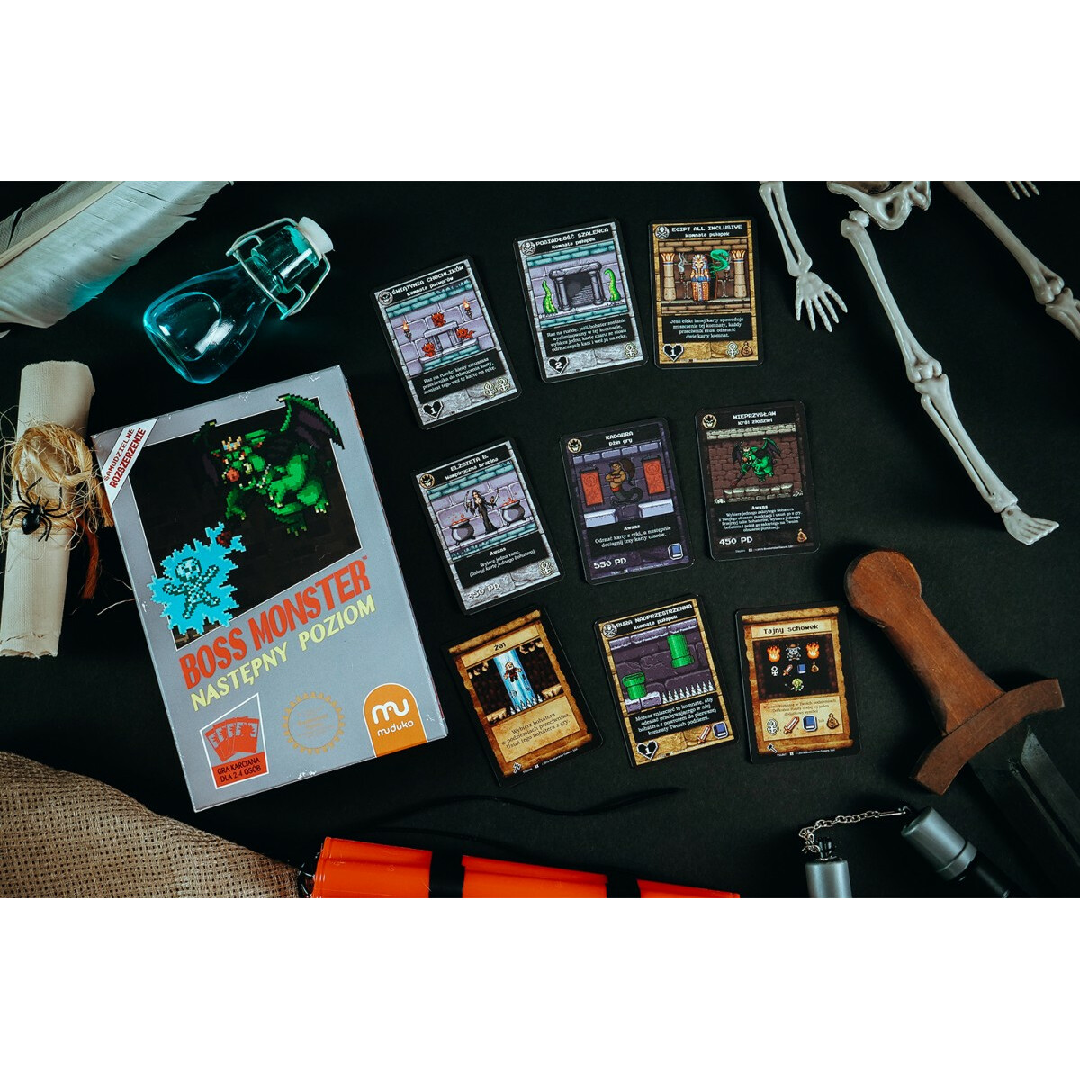 Boss Monster: Następny poziom to niezależna kontynuacja popularnej gry karcianej Boss Monster, inspirowanej komputerową klasyką. I tym razem gracze wcielają się w role bossów złoczyńców rodem z retro gier wideo. Celem graczy jest budowa lochów z atrakcyjnymi skarbami, pełnych pułapek i potworów, rzucanie czarów oraz wabienie bohaterów, których dusze dają cenne punkty zwycięstwa.