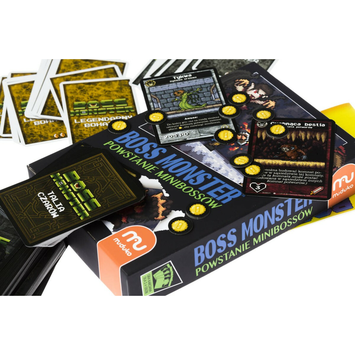 Powstanie Minibossów to trzecia już samodzielna część kultowej serii Boss Monster. Wprowadza całkiem nowe mechaniki monet i rekrutowania minibossów, które czynią rozgrywkę jeszcze bardziej atrakcyjną.