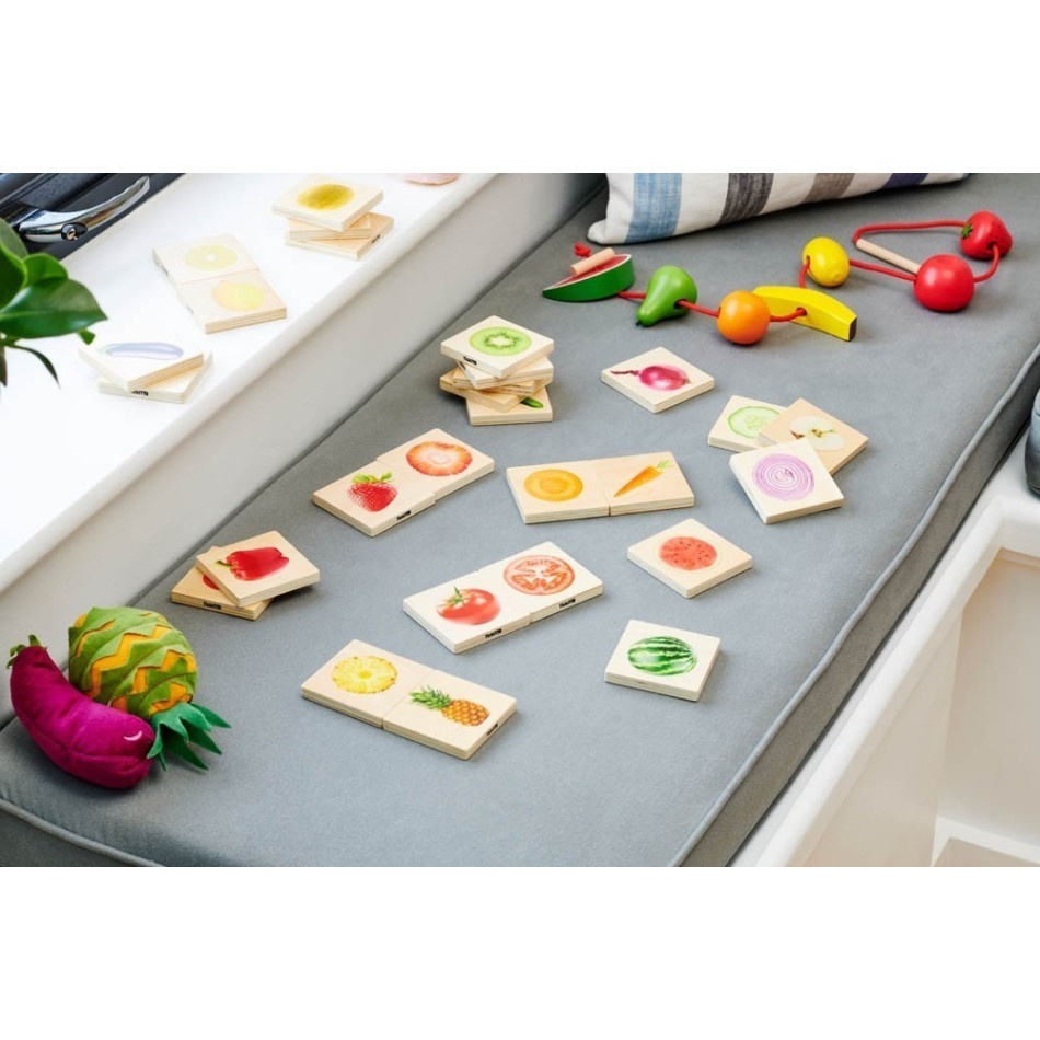 1. W grze dopasowującej – odwróć wszystkie płytki i dopasuj cały owoc / warzywo do odpowiadającego mu obrazu plastra.