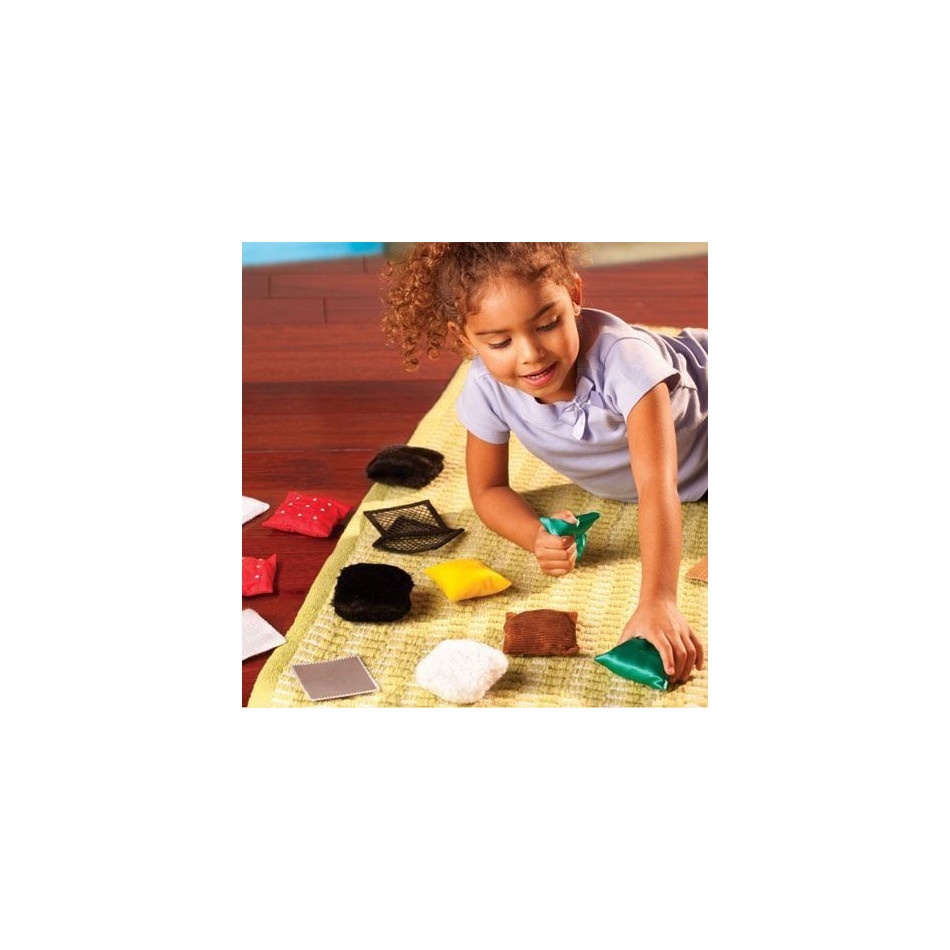 Dzieci dzięki tym woreczkom mogą poznać 10 różnych tekstur takich jak np. szorstka, śliska, jedwabista czy miękka.