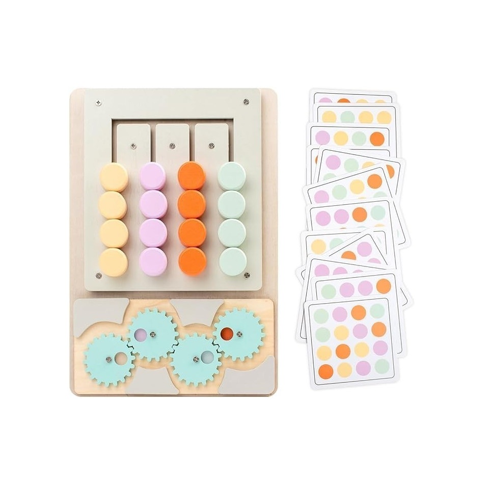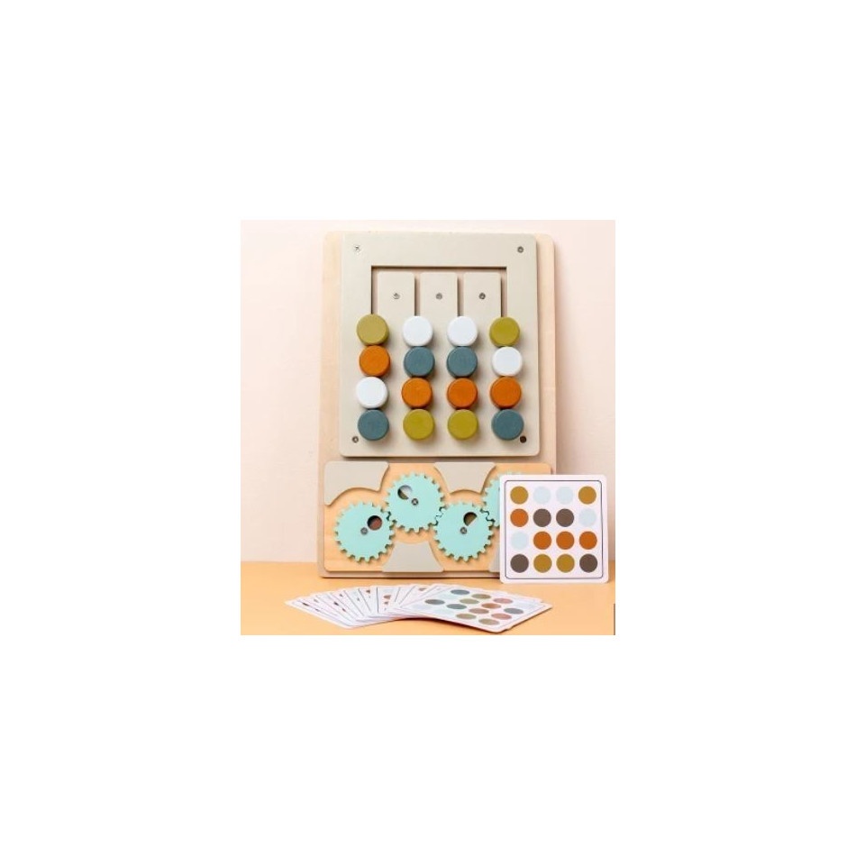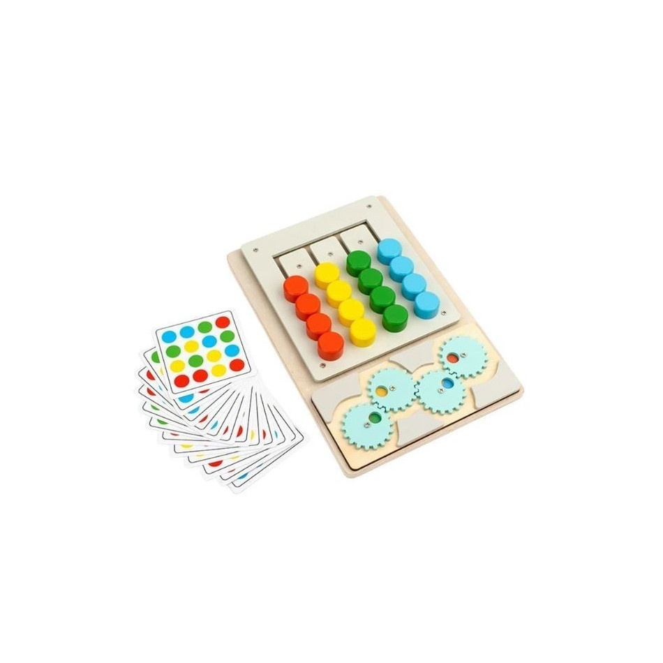Drewniane zębatki to gra edukacyjna, która wspomaga koordynację oko-ręka, małą motorykę. Podczas zabawy dziecko poznaje kolory, a dzięki dołączonym kartom pracy odwzorowuje sekwencje na nich podane.