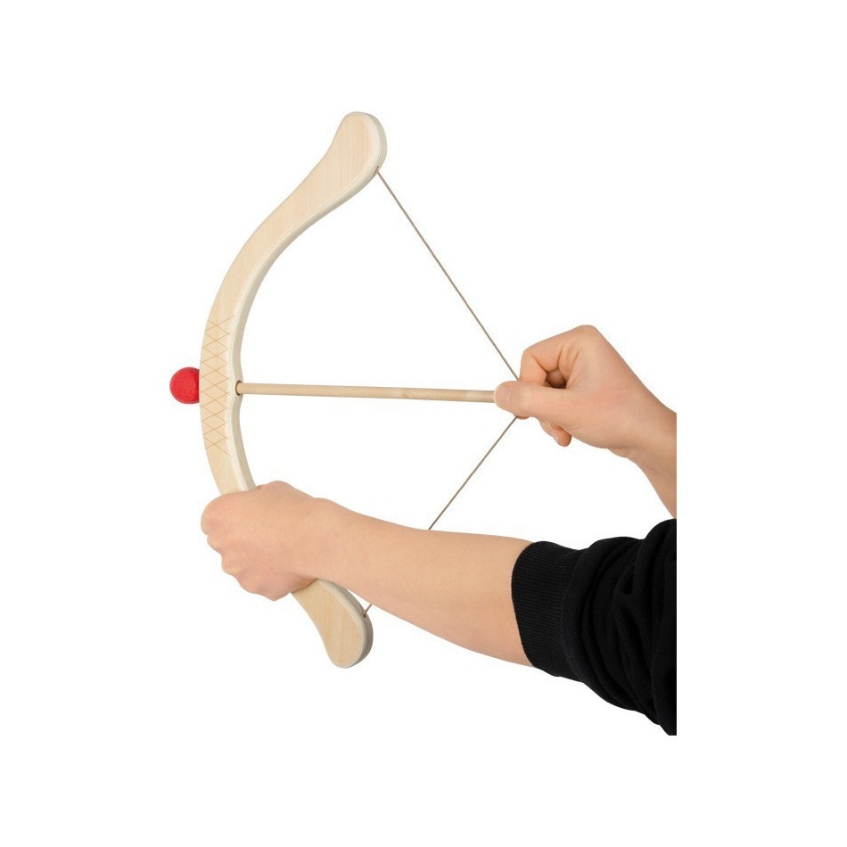 Wymiary: Łuk ok. 42 x 15 x 2 cm, Długość strzały: ok. 30 cm, Ø ok. 3 cm, Tarcza ze stojącą podstawą ok. 12 x 3 x 14 cm