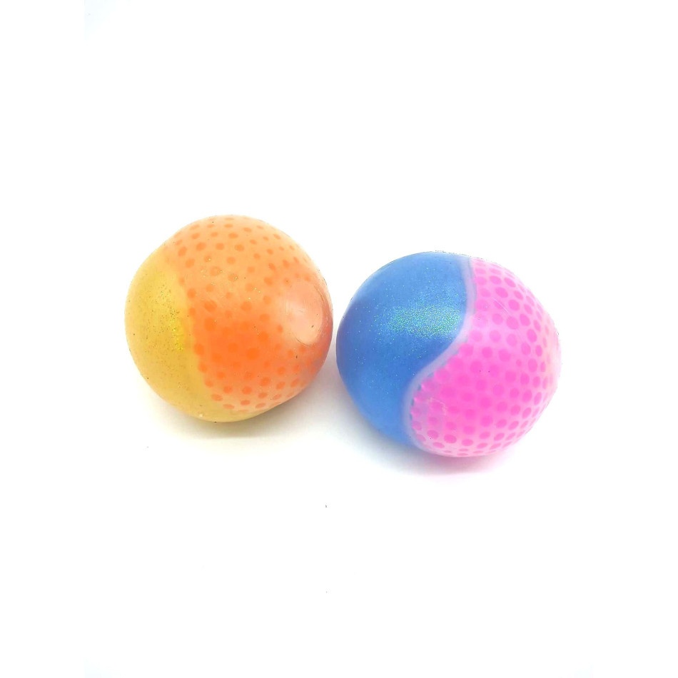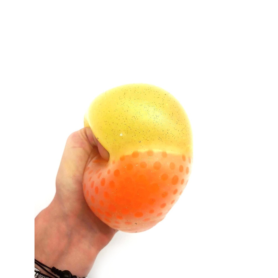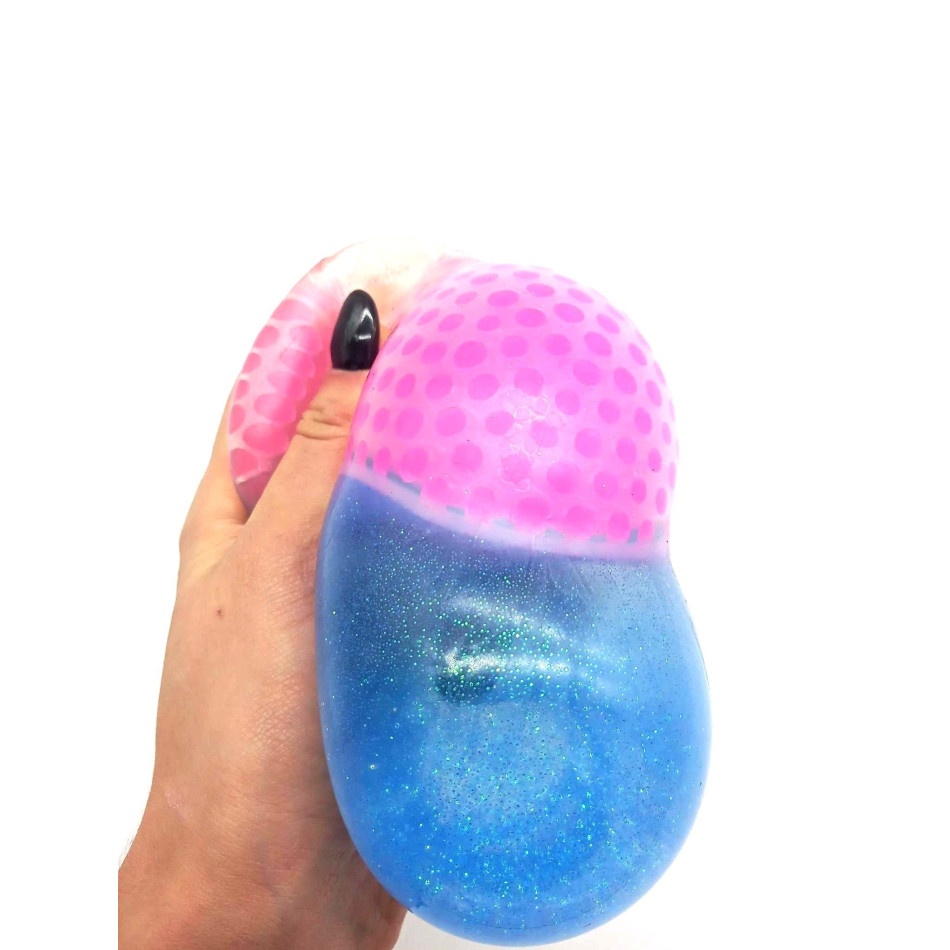Z jednej strony gniotka jest brokatowa plazma a z drugiej żelowe kuleczki które dostarczają dodatkowych wrażeń dotykowych.