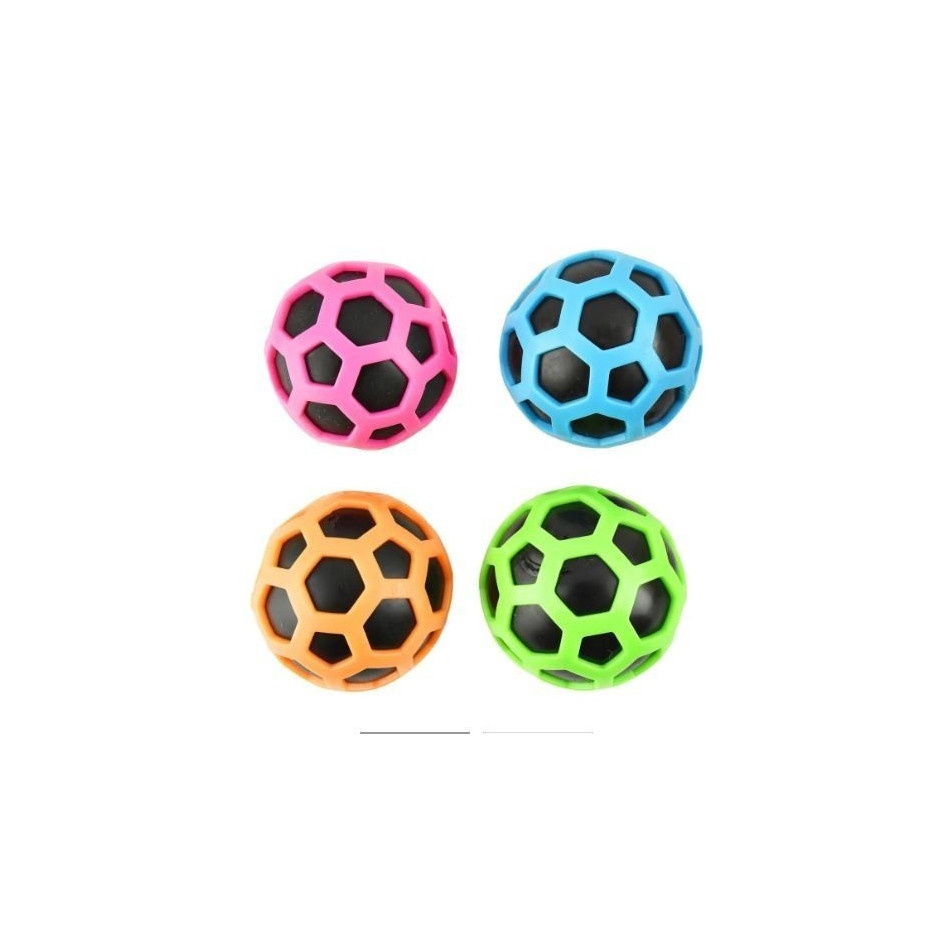 Duży gniotek w kształcie piłki futbolowej wykonany jest z trwałego materiału. Ściskając i zgniatając go, zobaczysz jak przeciska się pomiędzy okalającą go kolorową powłoką. Zredukuje poziom stresu, a także idealnie będzie wspomagał w terapii ręki.