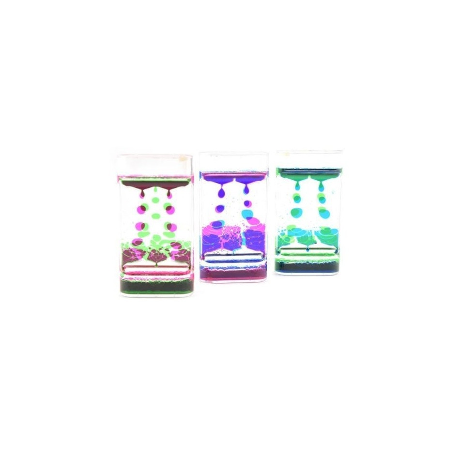 Dwukolorowa klepsydra z kropelkami, które przyciągają wzrok. Ma działanie uspokajające. Relaksuje i odpręża.