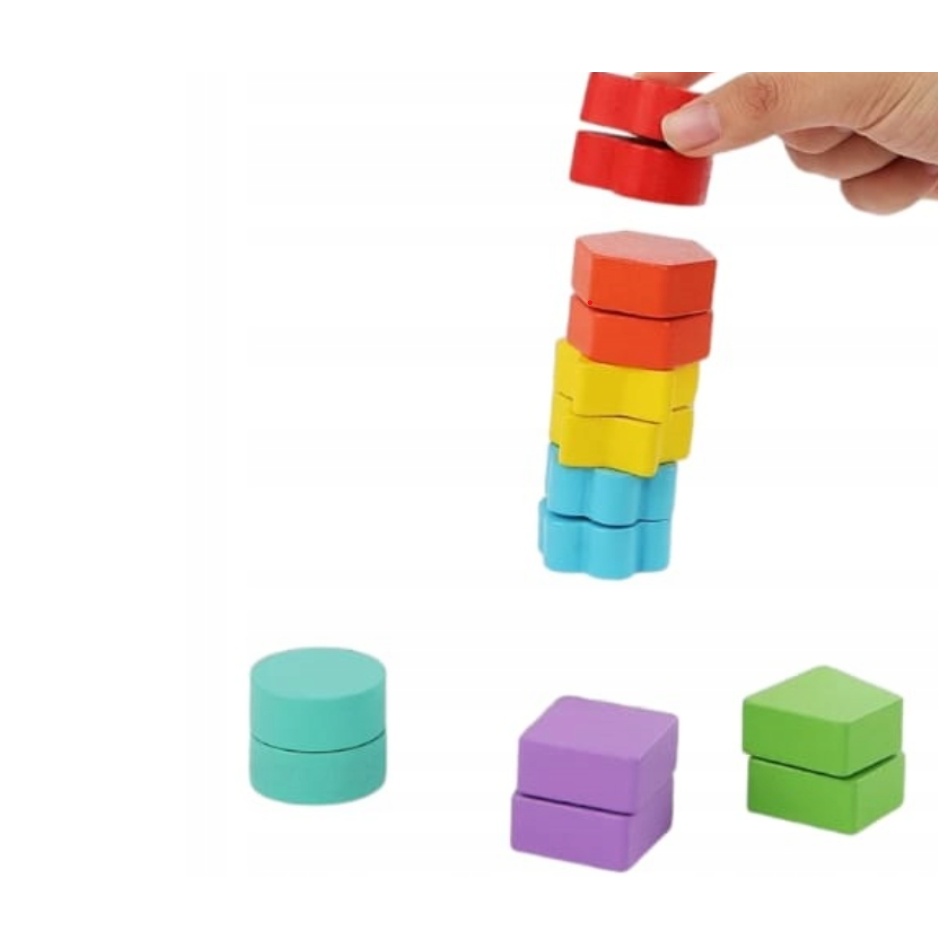Dzięki różnorodnym kształtom i kolorom, nasz sorter pomaga dzieciom w nauce podstawowych pojęć geometrycznych, jednocześnie rozwijając zdolność abstrakcji i postrzegania przestrzeni. Nauka przez doświadczenie.