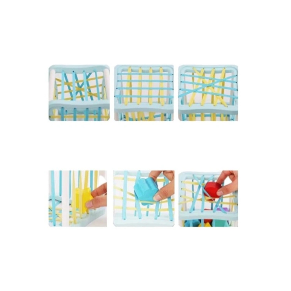 Drewniany sorter klocków, kostka sensoryczna, Montessori, Gumki Kolor dominujący wielokolorowy