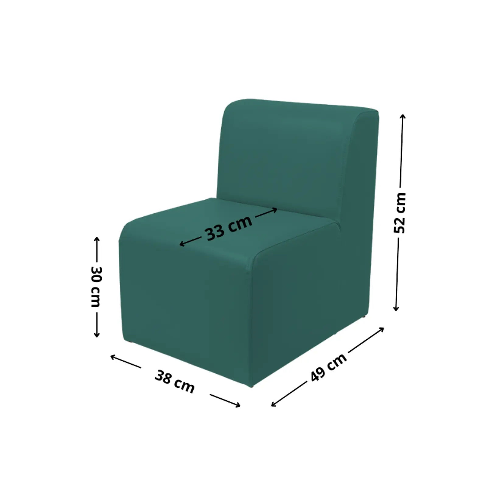 Fotel Modulo  to wygodne siedzisko dla najmłodszych. Pokryty jest materiałem z powłoką PCV wolnym od ftalanów oraz stosowanym dla wyrobów medycznych, dzięki czemu jest bardzo łatwy w czyszczeniu oraz dezynfekcji. Trwały drewniany stelaż, z którego wykonana jest konstrukcja oraz najwyższej jakości pianka w połączeniu ze starannym obszyciem to gwarancja długiej żywotności produktu. Produkt oferowany jest w szerokiej gamie kolorystycznej (21 kolorów), co umożliwia aranżację go w każdą przestrzeń.