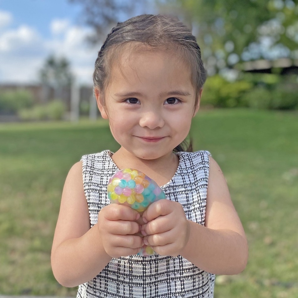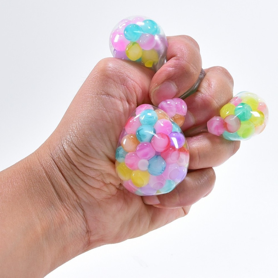 Piłka do ściskania wypełniona kolorowymi kulkami wodnymi w pięknych pastelowych kolorach. Idealna do rozładowania stresu lub nudy.