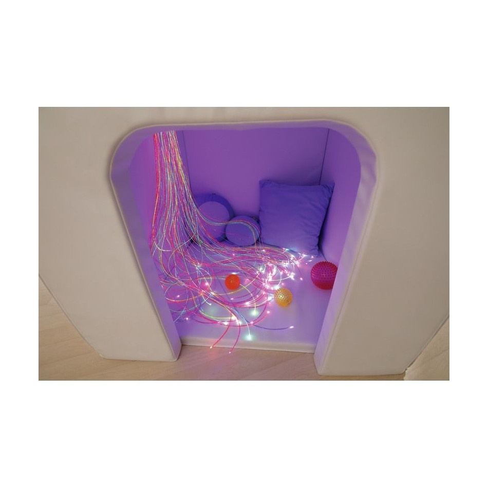 Wnętrze kabiny pozwala dzieciom poczuć się bezpiecznie, zrelaksować się i skupić. Grube, miękkie ścianki z pianki skutecznie tłumią dźwięki, pomagając w redukcji stresu i przestymulowania.
