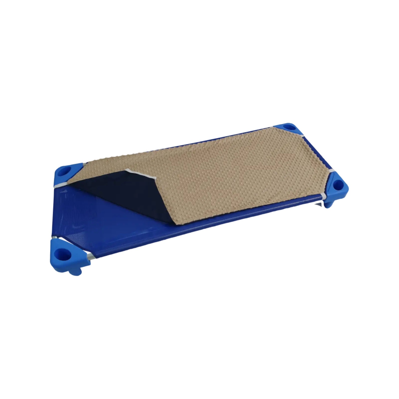 Kocyk dwustronny nieprzemakalny na łóżeczka plastikowe – starannie uszyty nieprzemakalny kocyk stanowi doskonały ochraniacz na łóżeczko lub plastikowy leżak przedszkolny jednocześnie dając komfort wypoczynku leżakującym na nim dzieciom. Ten przyjemny kocyk pozwala skutecznie zabezpieczyć leżak przed zabrudzeniem oraz zniszczeniem. Wierzchnią warstwę prześcieradełka stanowi miła i miękka tkanina bawełniana minky, natomiast spód to wodoszczelna membrana poliuretanowa, która nie przepuszcza płynów. Zastosowanie tych materiałów sprawia, że oferowany produkt charakteryzuje się trwałością i wytrzymałością a przy tym jest bardzo przyjemny dla dzieci. Dzięki elastycznym gumkom można je z łatwością dopasować do kształtu i rozmiaru leżaka. Kocyk stanowi doskonałą alternatywę lub dopełnienie dla materacyka do łóżeczek.