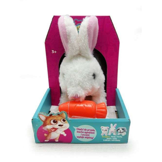 Królik chodzi, popiskuje oraz rusza głową i ogonem, co zapewnia dzieciom dużo radości.