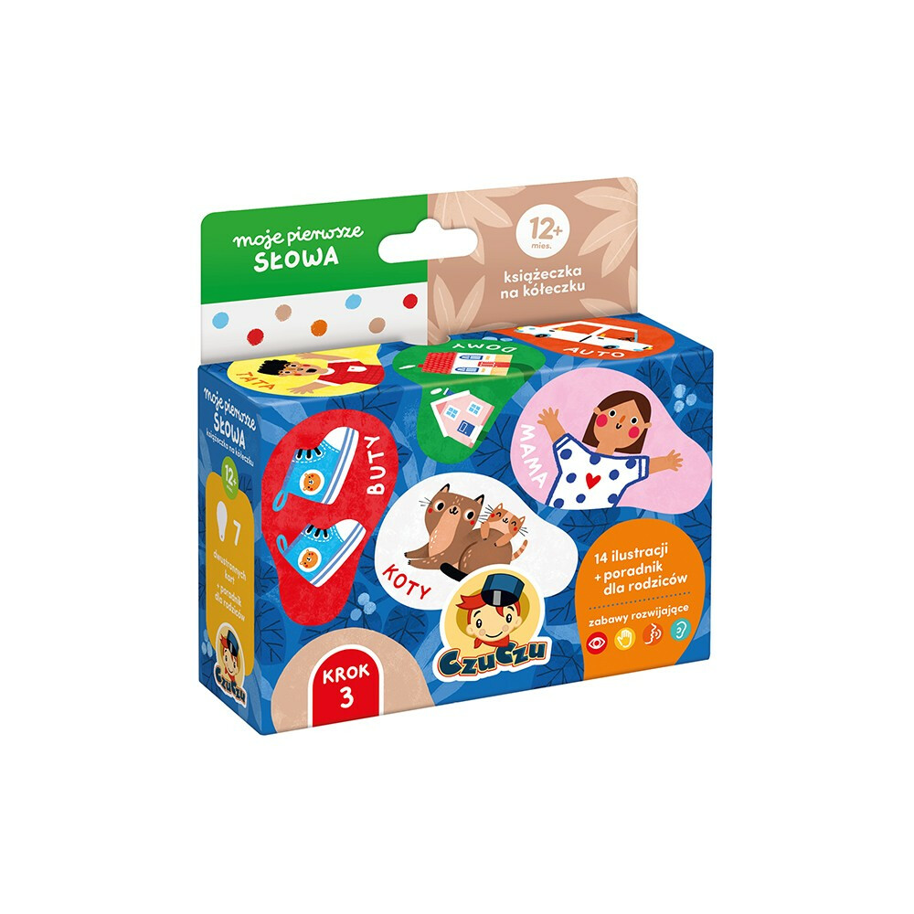 Bawcie się i czytajcie razem, zachęcając malucha do podejmowania prób mówienia. Książeczka na kółeczku ma 14 stron i pełne humoru, soczyście kolorowe ilustracje, które przedstawiają to, co bliskie i znane maluchom. Co najlepsze, proste wyrazy łatwo wymówić już roczniakom. Do zestawu dołączyliśmy poradnik z pomysłami na zabawy z książeczką.
