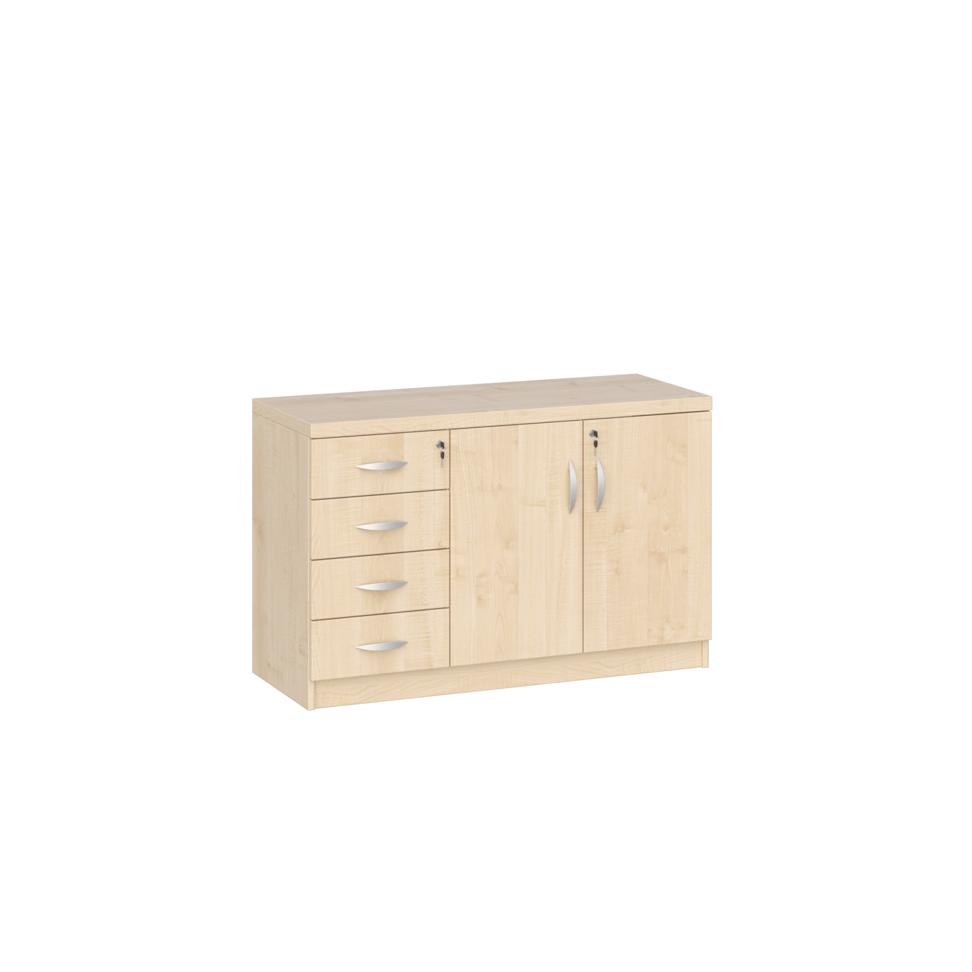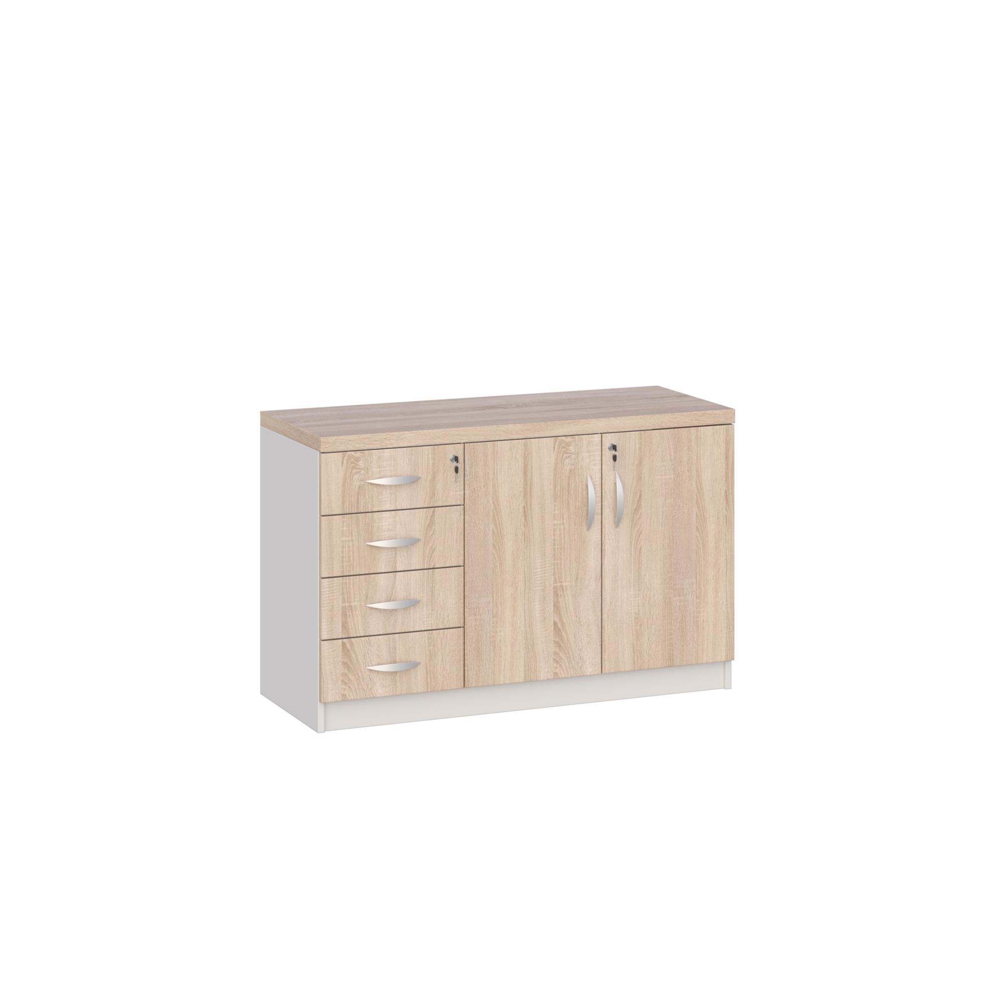 - Komoda z 4 szufladami i szafką z półką umożliwia funkcjonalne przechowywanie dokumentów i segregatorów.