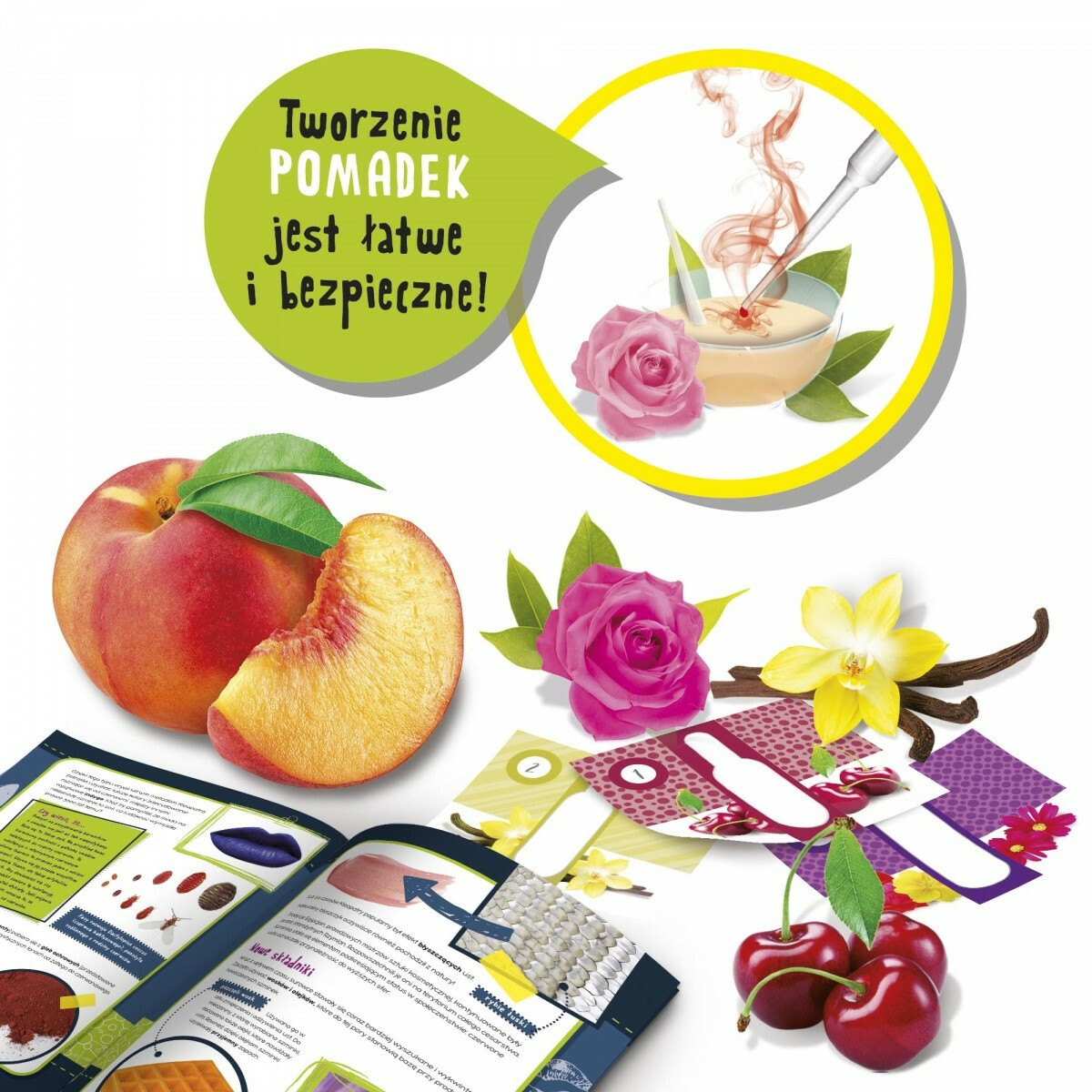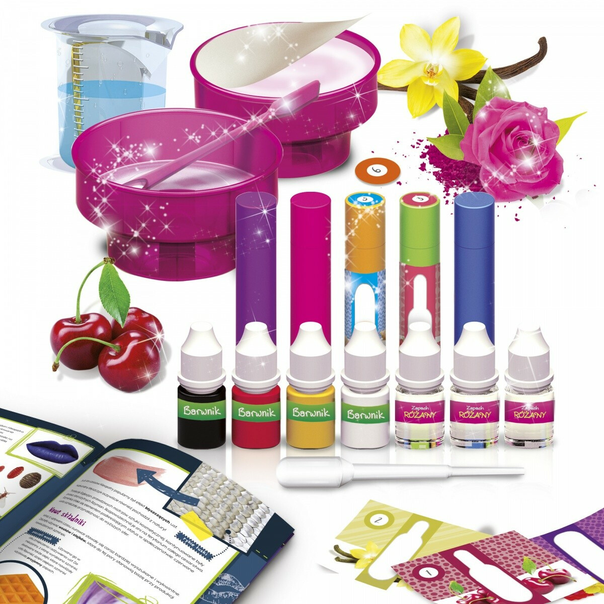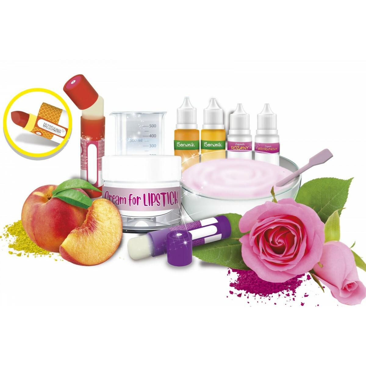 Wykorzystaj kolory i aromaty dostępne w zestawie i stwórz wyjątkowe pomadki.