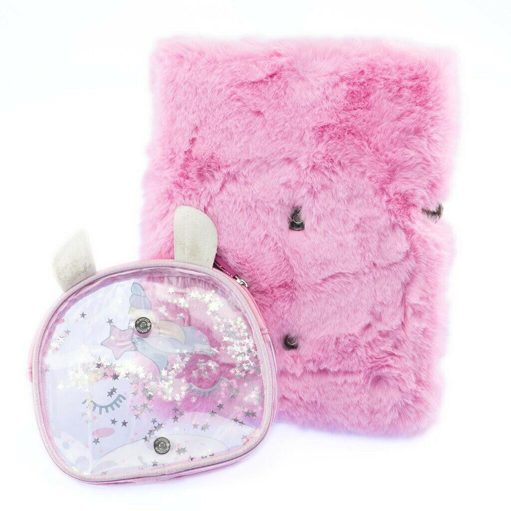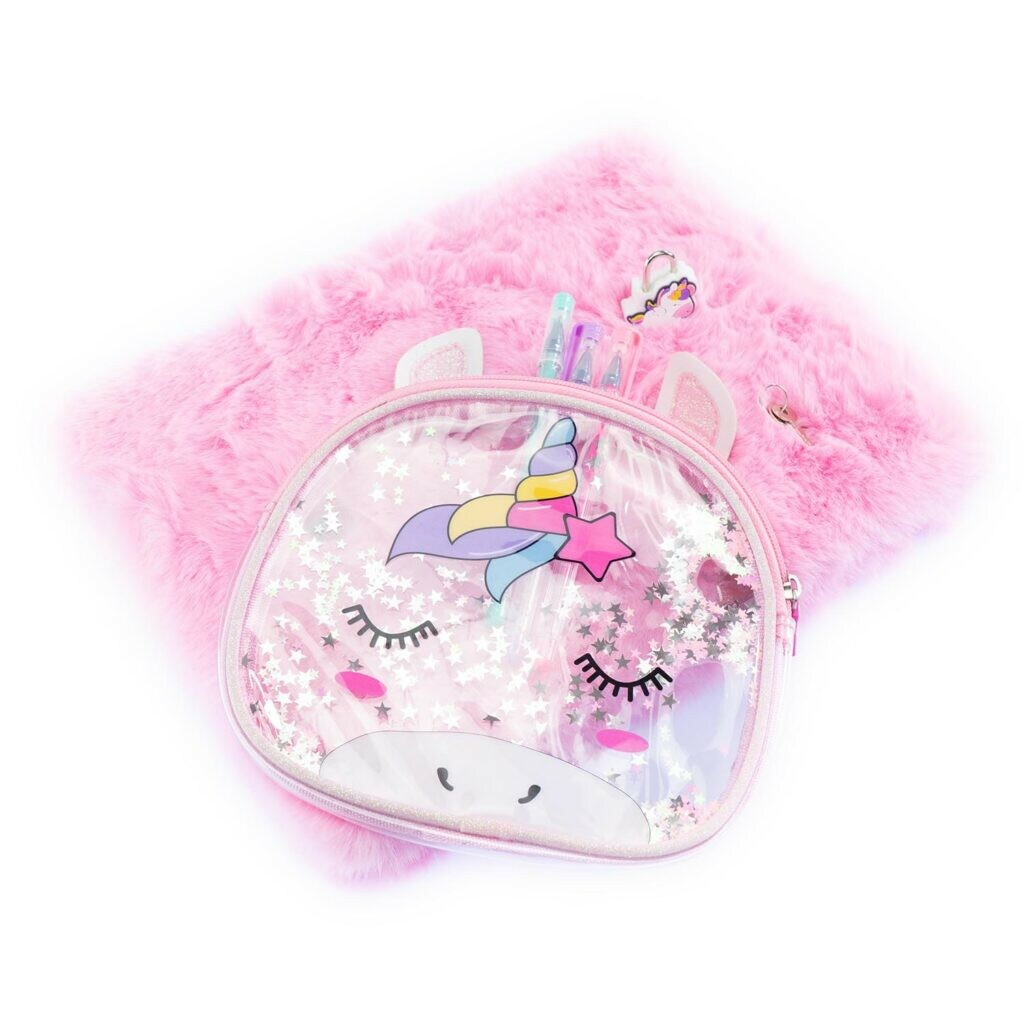 Duży planer z futrzaną okładką i odpinaną kosmetyczką z motywem jednorożca. Dzięki specjalnemu zamkowi możesz zachować bezpieczeństwo swoich sekretów, a dzięki kolorowym żelom możesz wyrazić całą swoją kreatywność.