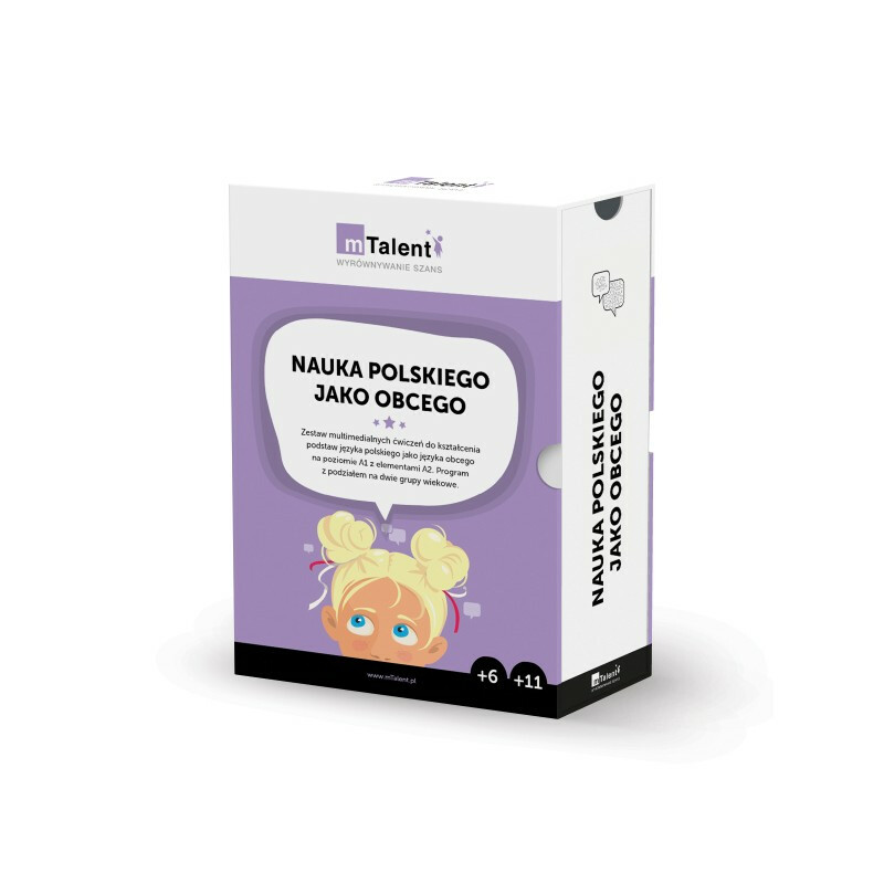 Zestaw multimedialnych ćwiczeń do kształcenia podstaw języka polskiego jako języka obcego na poziomie A1 z elementami A2. Program z podziałem na dwie grupy wiekowe (klasy I-III i IV-VIII). Program przeznaczony do nauki na zajęciach indywidualnych i grupowych z języka polskiego jako obcego, a także na zwykłych lekcjach języka polskiego, na które uczęszczają uczniowie z niską znajomością języka polskiego (np. dzieci z doświadczeniem migracji) oraz do samodzielnej pracy uczniów w domu (np. karty pracy). Zestaw uzupełnia regularny podręcznik kursowy i indywidualizuje pracę odpowiednio do możliwości uczniów.
