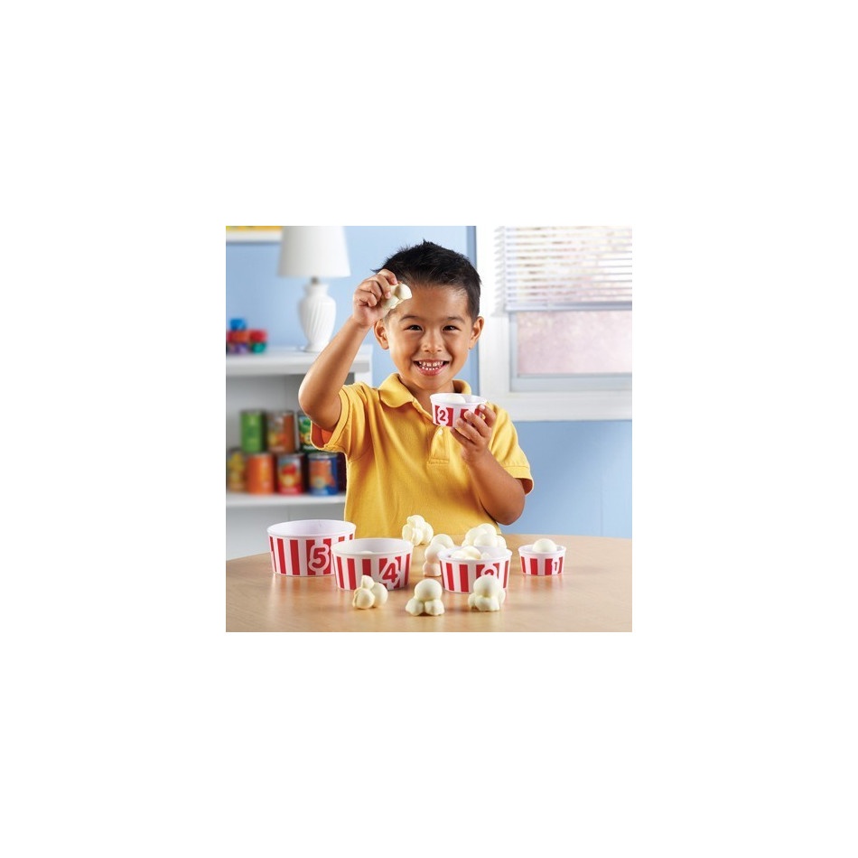 • Zestaw zawiera 15 dużych kawałków popcornu, idealnych do nauki liczenia.