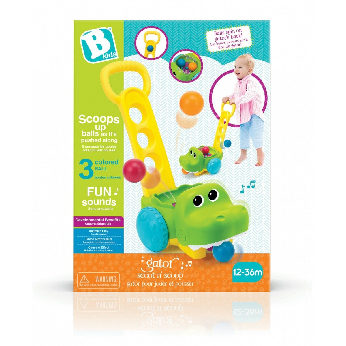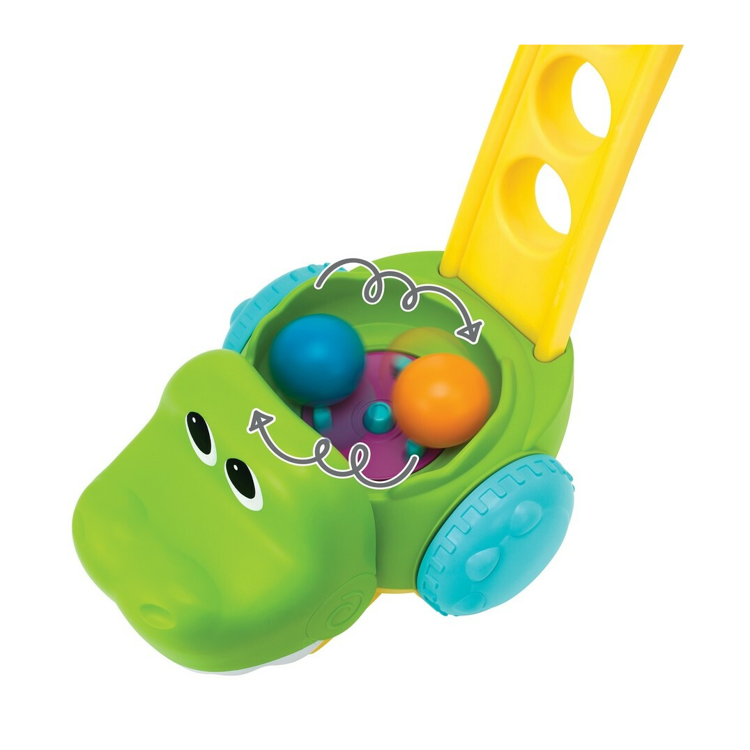 Twój maluch będzie zachwycony gdy zobaczy krokodyla połykającego kolorowe piłeczki jak odkurzacz! Popchnij zabawkę a zobaczysz jak Krokodyl łapie kolorowe piłeczki do swojej paszczy i jedzie dalej, następnie piłeczki wesoło wyskakują od góry zabawki. Wydaje ciekawe efekty dźwiękowe kiedy maluch popycha odkurzacz po podłodze.