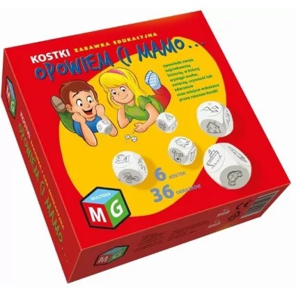 Ta bardzo prosta gra narracyjna będzie rewelacyjnym sposobem na rozwijanie dziecięcej wyobraźni. Jak przebiega rozgrywka? W pudełku znajduje się 6 kostek obrazkowych, którymi należy rzucić, by ustalić tematykę opowieści. Ilustracje mogą prezentować czynność, zdarzenie, osobę lub miejsce akcji. Gracz tworzy następnie opowieść zawierającą wszystkie wylosowane przez siebie elementy.