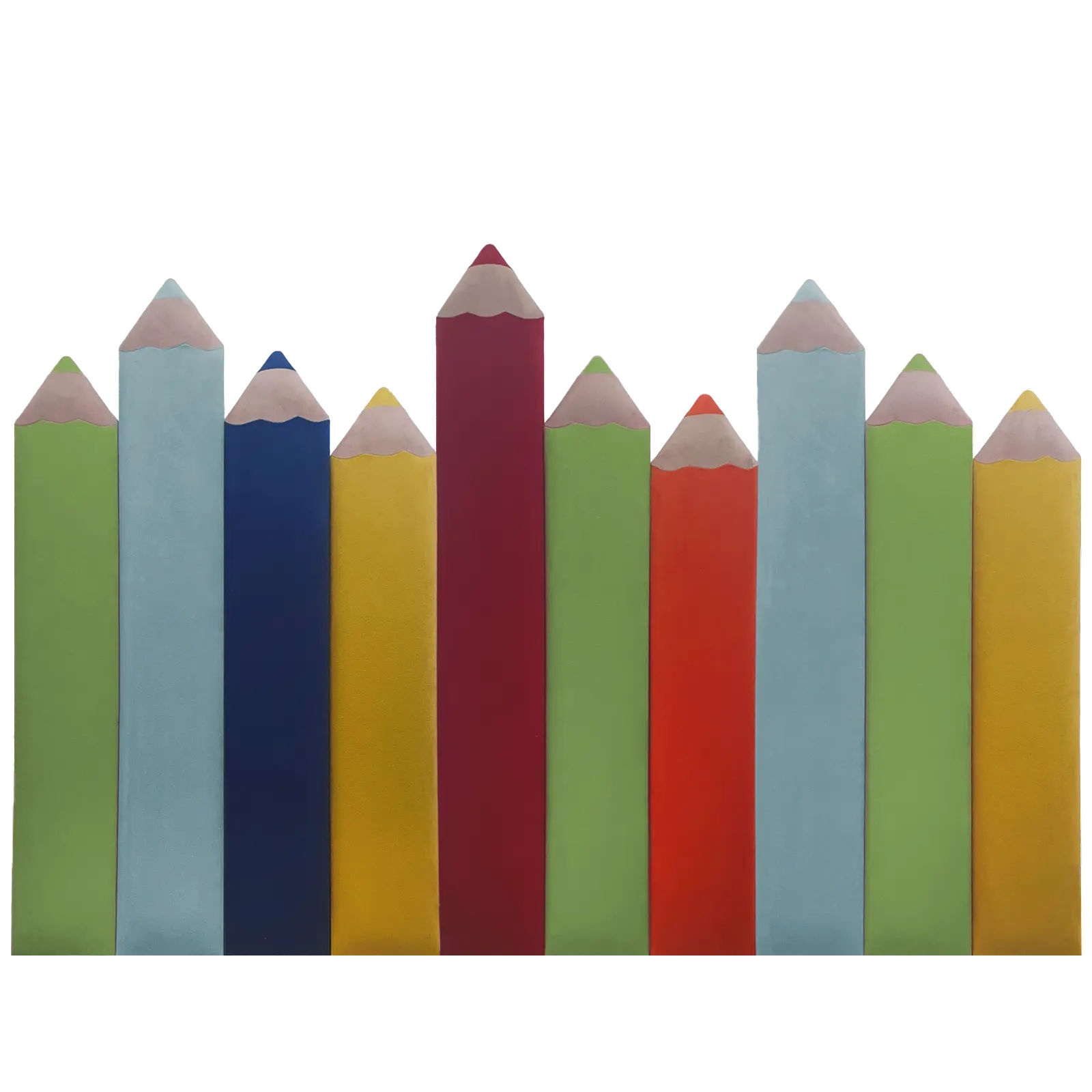Panel ścienny – kredka to miękkie i bezpieczne panele na ścianę w kształcie kolorowych kredek. Panele wykonane są z wysokiej jakości miękkiego i przyjemnego w dotyku weluru co sprawia, że pomieszczenie staje się przytulne. Panele oferujemy w 4 wysokościach i w kilku kolorach do wyboru, dzięki czemu z łatwością mogą Państwo zaaranżować przestrzeń przy łóżku, kącik dla malucha czy kącik w sali przedszkolnej. Montaż jest bardzo prosty, wystarczy taśma dwustronna lub klej montażowy i panele trzymają się ściany.