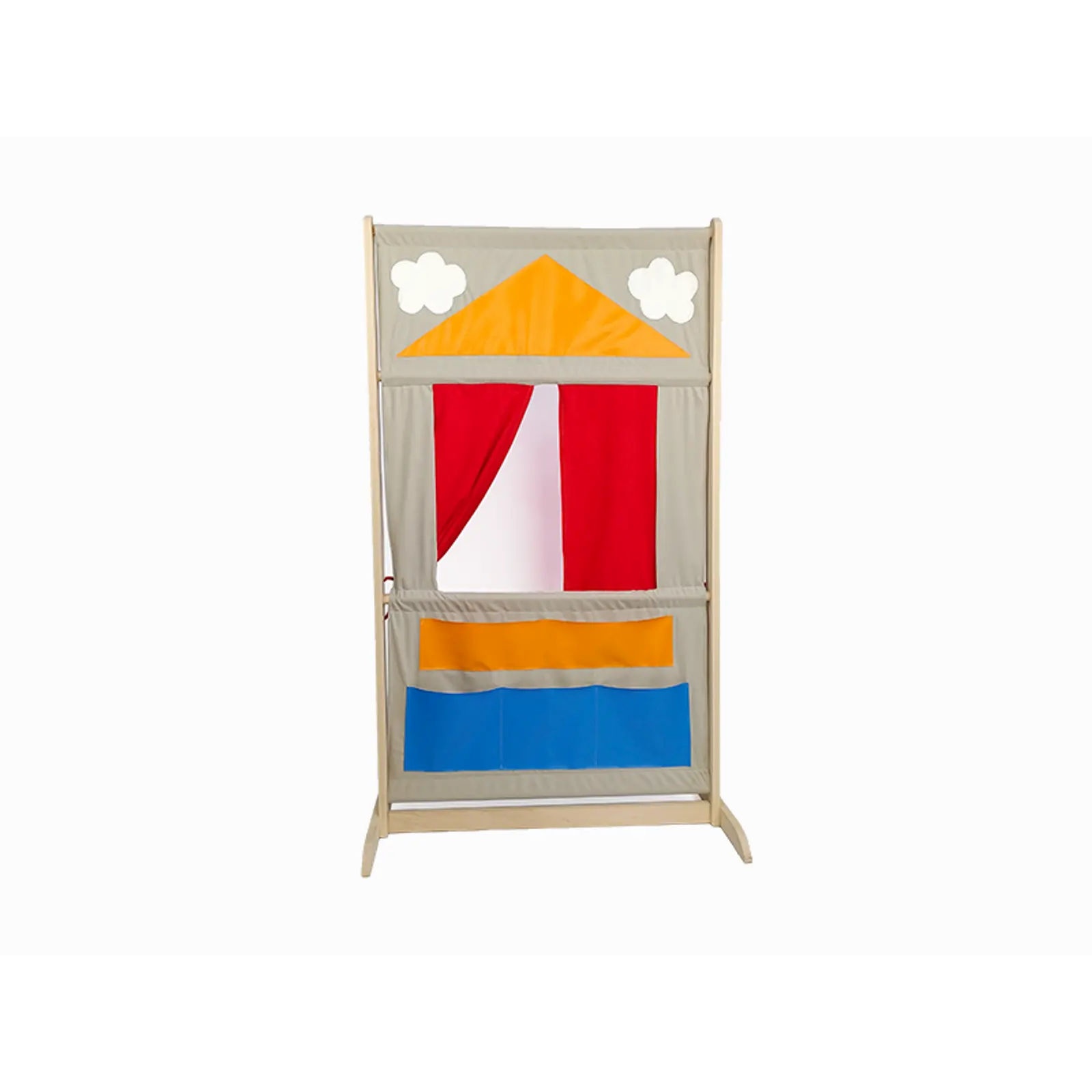 Parawan wysoki Teatrzyk- z okienkiem i kotarą zapewni dzieciom przestrzeń do tworzenia przedstawień, scenek i dialogów. Kieszenie mogą służyć do przechowywania teatralnych rekwizytów. Parawan może służyć również do podziału pomieszczenia lub jako dekoracja. Doskonale sprawdzi się przy tworzeniu dziecięcych kącików w salach przedszkolnych oraz innych miejscach przeznaczonych przez dzieci.