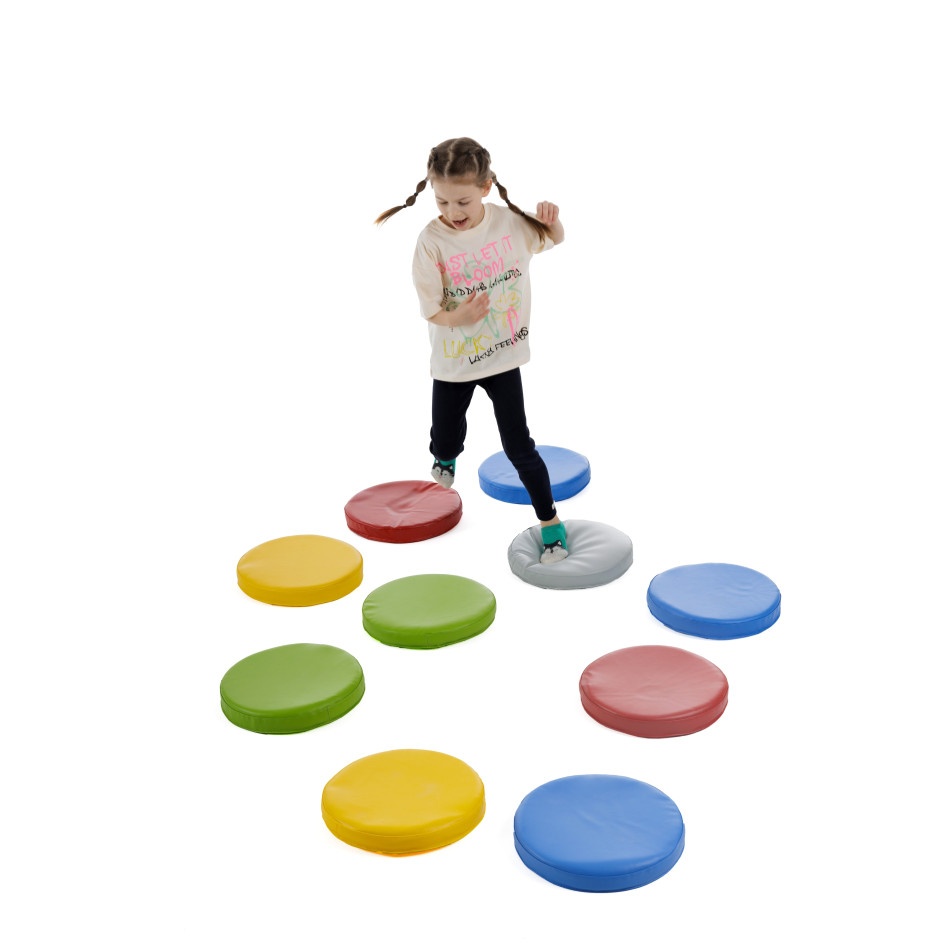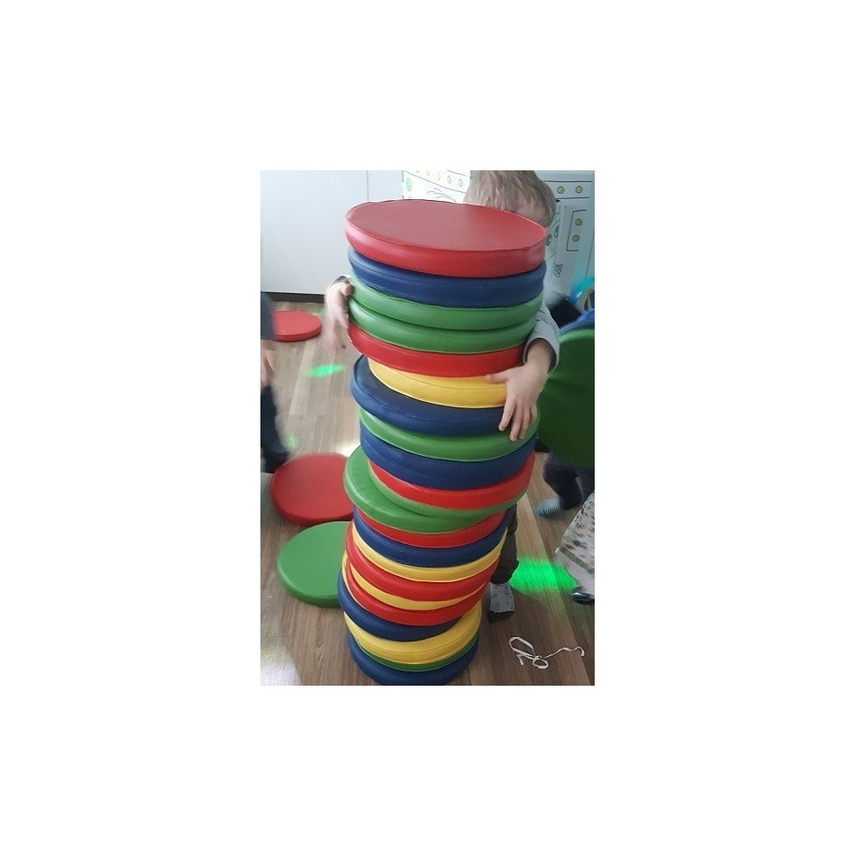 Poduszki wykonane z trwałej sztucznej skóry, łatwej do utrzymania w czystości, wypełnione gąbką. 8 poduszek w 4 kolorach (2 x czerwona, 2 x niebieska, 2 x zielona, 2 x żółta) Możemy wykonać dowolną ilość w wybranym przez klienta kolorze.