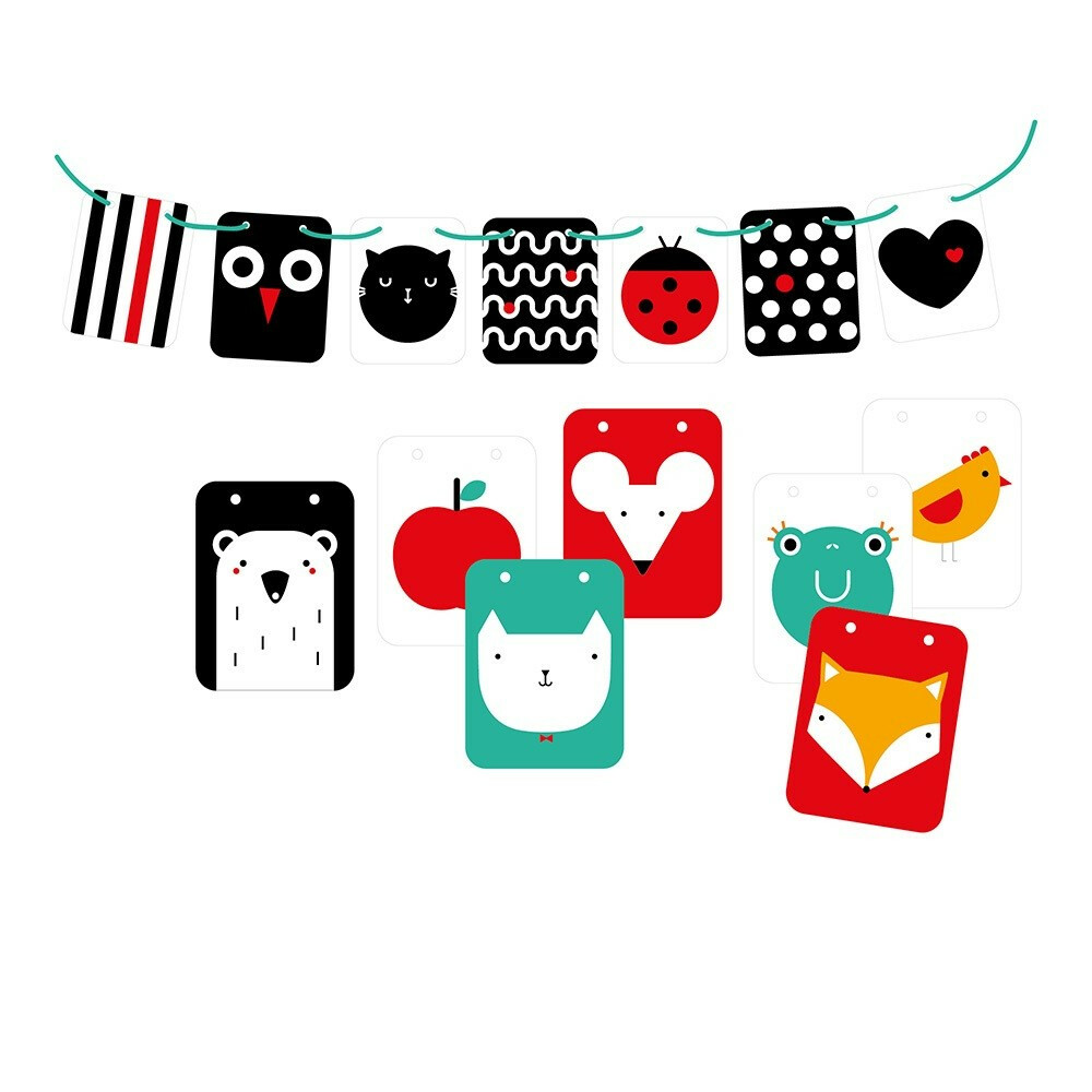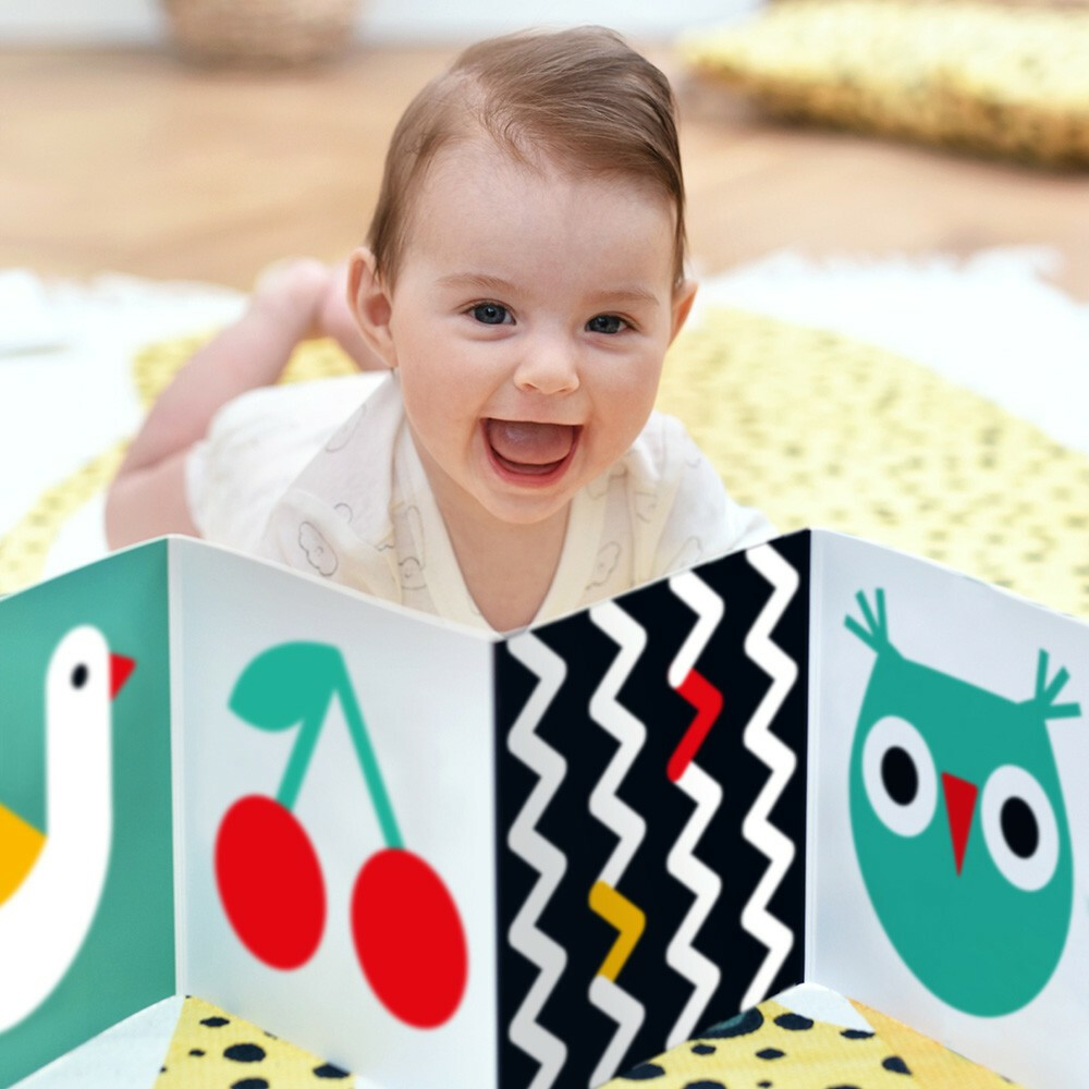 Edukacyjny zestaw zawiera kontrastowe książeczki i karty do pokazywania oraz poradnik pełen ciekawostek o rozwoju niemowląt i pomysłów na zabawę. Proste, kontrastowe ilustracje w książeczce są dostosowane do rozwijającego się wzroku niemowląt. Oglądajcie je razem. Opowiadaj o tym, co na nich widać maluchy uwielbiają słuchać twojego głosu. To doskonały sposób na wspólne spędzanie czasu z maluszkiem i budowanie wyjątkowej więzi.