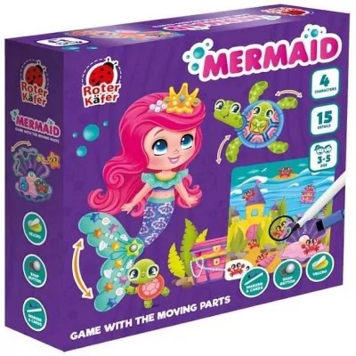 Zestaw zawiera plansze do gry z ruchomymi elementami i dodatkowe detale. Zamocuj te elementy za pomocą rzepów. Przykład: wybierz wizerunek syrenki i dołącz elementy garderoby wraz z akcesoriami. Rusz ogon!