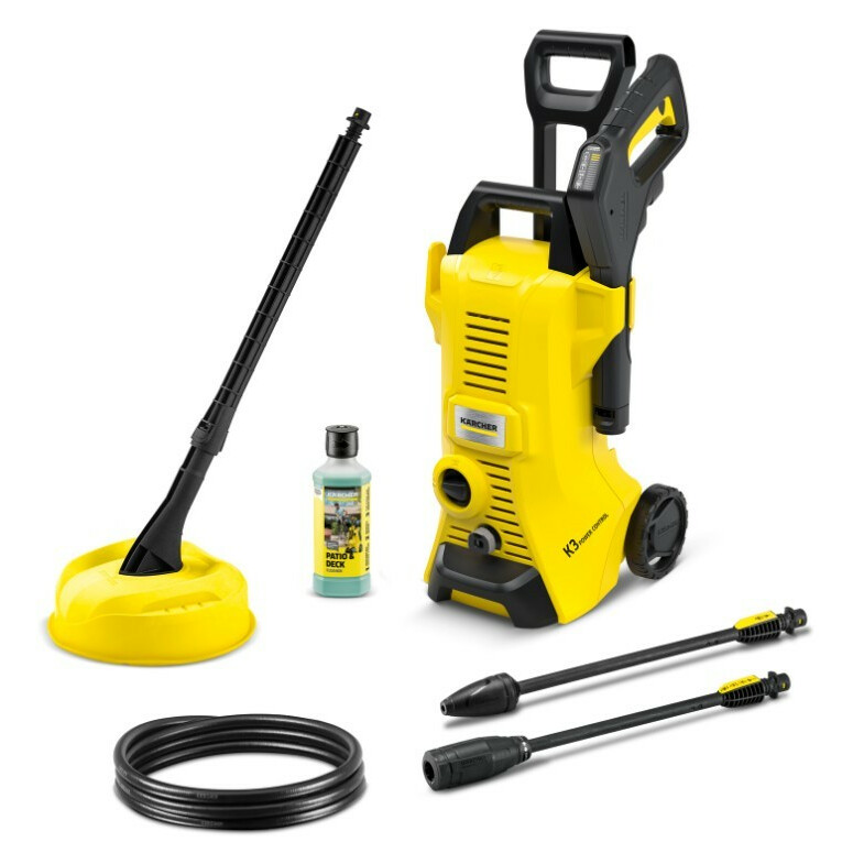 Dzięki praktycznemu konsultantowi mobilnemu przez aplikację Home & Garden, która wspiera urządzenie wysokociśnieniowe K 3 Power Control, firma Kärcher umożliwia jeszcze lepsze efekty czyszczenia, zamieniając użytkownika w eksperta czystości. Aplikacja oferuje również kompleksową usługę obejmującą informacje o urządzeniu i zastosowaniu oraz portal Kärcher Service. Poziom ciśnienia odpowiedni do zastosowania można ustawiać bezpośrednio na lancy spryskującej i kontrolować na wskaźniku pistoletu spryskującego G 120 Q Power Control. Środek można dozować szybko, łatwo i wygodnie bezpośrednio ze zintegrowanego zbiornika na detergent. Urządzenie wysokociśnieniowe K 3 Power Control firmy Kärcher imponuje również wysuwanym uchwytem teleskopowym do wygodnego transportowania i przechowywania, podstawą zapewniającą większą stabilność, uchwytami na akcesoria, pistolet i przewód, a także systemem szybkozłącza Kärcher Quick Connect. Podstawa może również służyć jako drugi uchwyt do przenoszenia, umożliwiając łatwe przechowywanie i załadunek urządzenia. Zestaw domowy gwarantuje czyszczenie większych obszarów wokół domu bez chlapania. Zawiera przystawkę do czyszczenia powierzchni płaskich T 1 oraz 500 ml środka czyszczącego do balkonów i tarasów Patio & Deck.