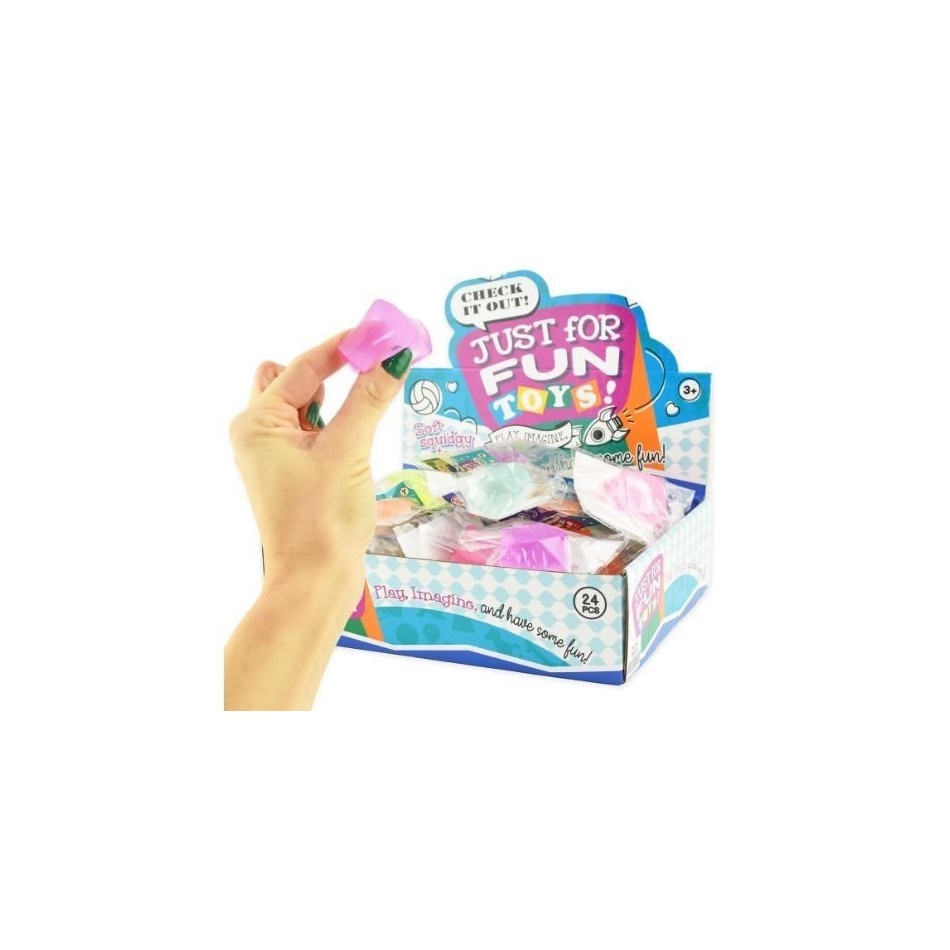 Mały żelowy gniotek w kształcie kostki lodu do ściskania.