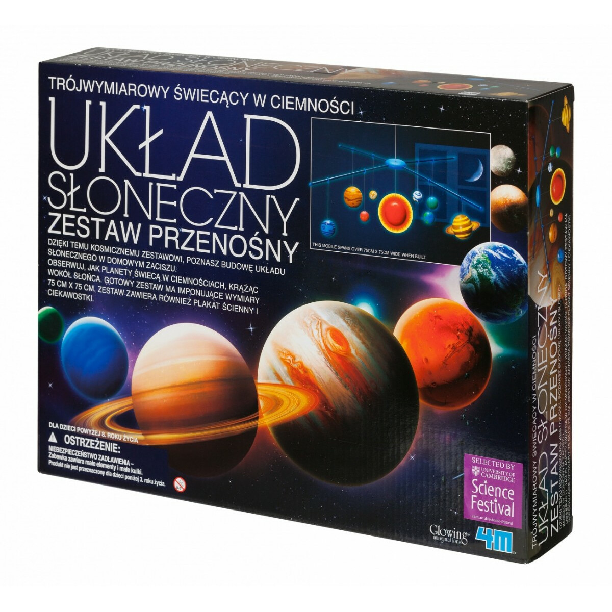 To doskonała lekcja astronomii dla każdego! Poprzez modelowanie poszczególnych planet z zapałem sięgniecie po więcej informacji dotyczących kosmosu. Nastrój, jaki wywoła barwna konstrukcja w jednym z pokoi, wprawi was zachwyt! Szczególnie po zmroku! Zestaw Układ Słoneczny pozwala na wykonanie modelu o wymiarach 42 x 60 cm. Możecie powiesić go tuż pod sufitem i obserwować planety nawet w pochmurne noce! Dodatkowo otrzymacie duży plakat pełen kosmicznych ciekawostek!