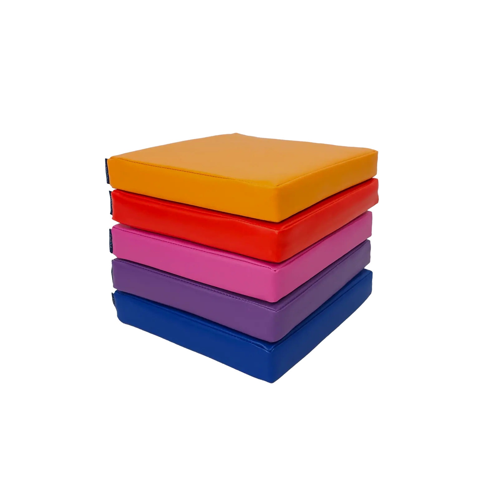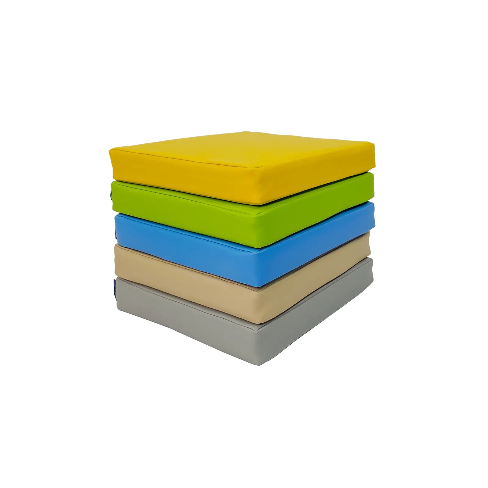 Zestaw klocków piankowych – Poduszki kwadratowe to zestaw 25 wygodnych, kolorowych siedzisk podłogowych. Każda poduszka wypełniona jest pianką poliuretanową, która zapewnia wygodę siedzenia podczas zajęć, zabawy lub odpoczynku. Pokrowiec wykonany jestz materiału najwyższej jakości z powłoką PCV przeznaczonego dla wyrobów medycznych, dzięki czemu jest bardzo łatwy w czyszczeniu oraz dezynfekcji. Produkt posiada certyfikację jako wyrób medyczny.