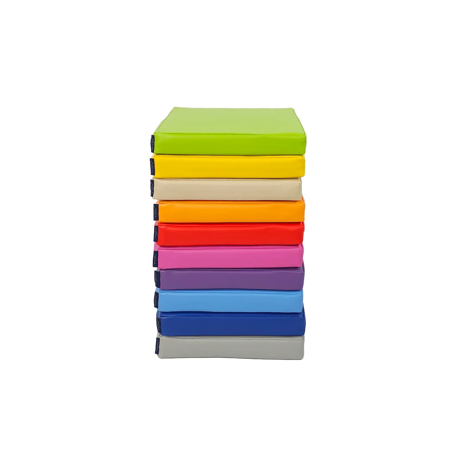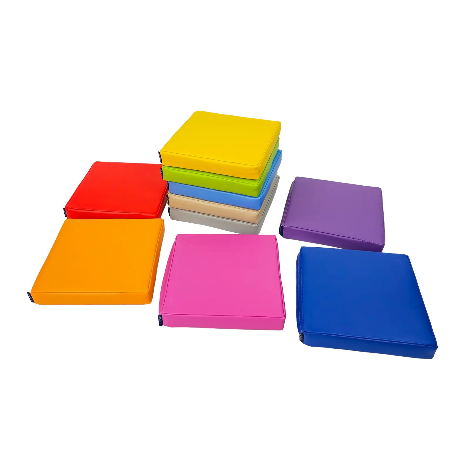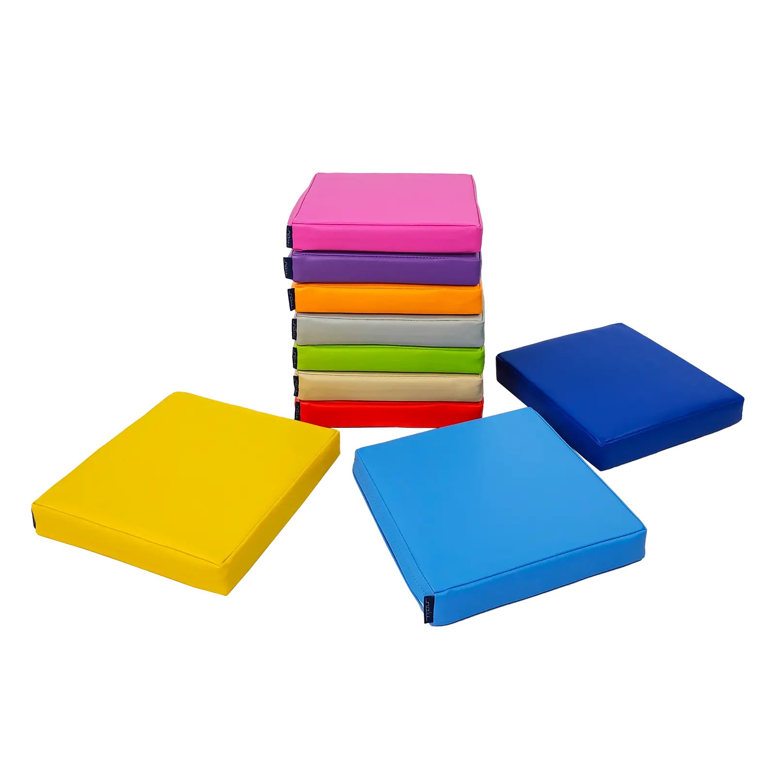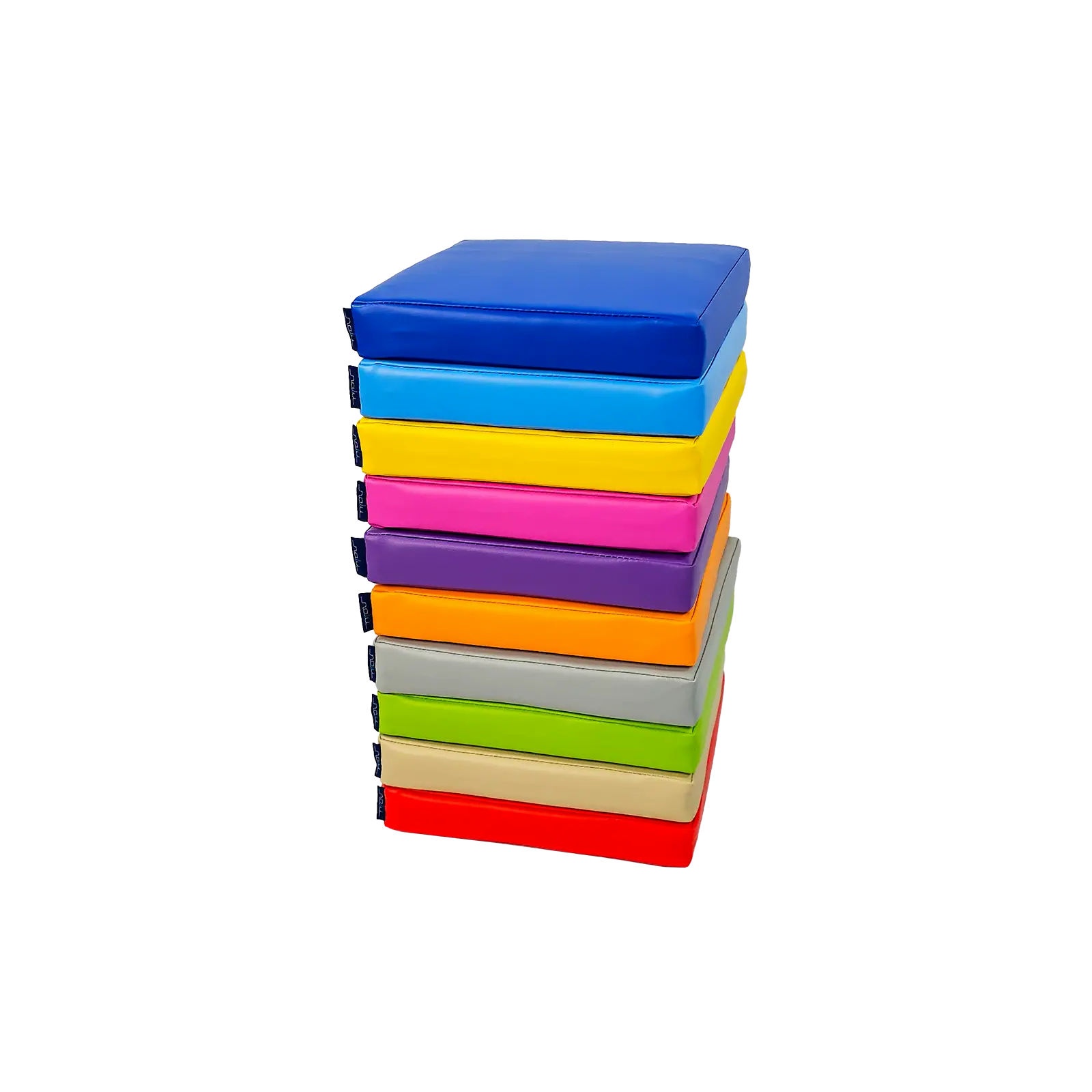 Zestaw klocków piankowych – Poduszki kwadratowe to zestaw 10 wygodnych, kolorowych siedzisk podłogowych. Każda poduszka wypełniona jest pianką poliuretanową, która zapewnia wygodę siedzenia podczas zajęć, zabawy lub odpoczynku. Pokrowiec wykonany jestz materiału najwyższej jakości z powłoką PCV przeznaczonego dla wyrobów medycznych, dzięki czemu jest bardzo łatwy w czyszczeniu oraz dezynfekcji. Produkt posiada certyfikację jako wyrób medyczny.
