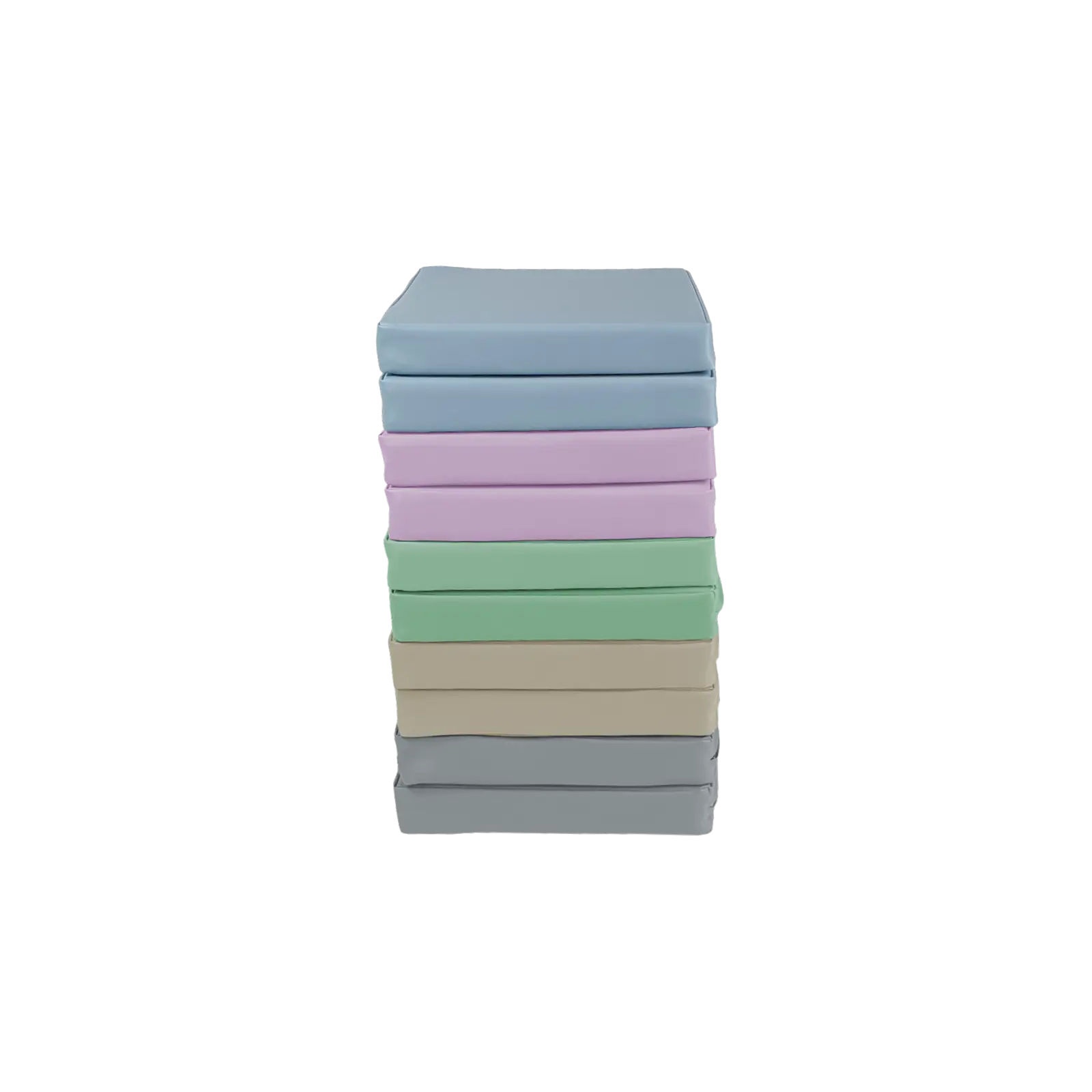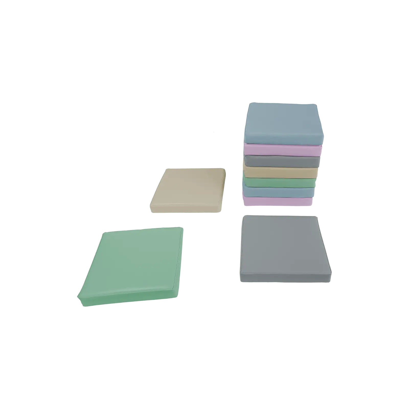 Zestaw klocków piankowych – Poduszki kwadratowe to zestaw 10 wygodnych, siedzisk podłogowych w pastelowych kolorach. Każda poduszka wypełniona jest pianką poliuretanową, która zapewnia wygodę siedzenia podczas zajęć, zabawy lub odpoczynku. Pokrowiec wykonany jest materiału najwyższej jakości z powłoką PCV przeznaczonego dla wyrobów medycznych, dzięki czemu jest bardzo łatwy w czyszczeniu oraz dezynfekcji. Produkt posiada certyfikację jako wyrób medyczny.