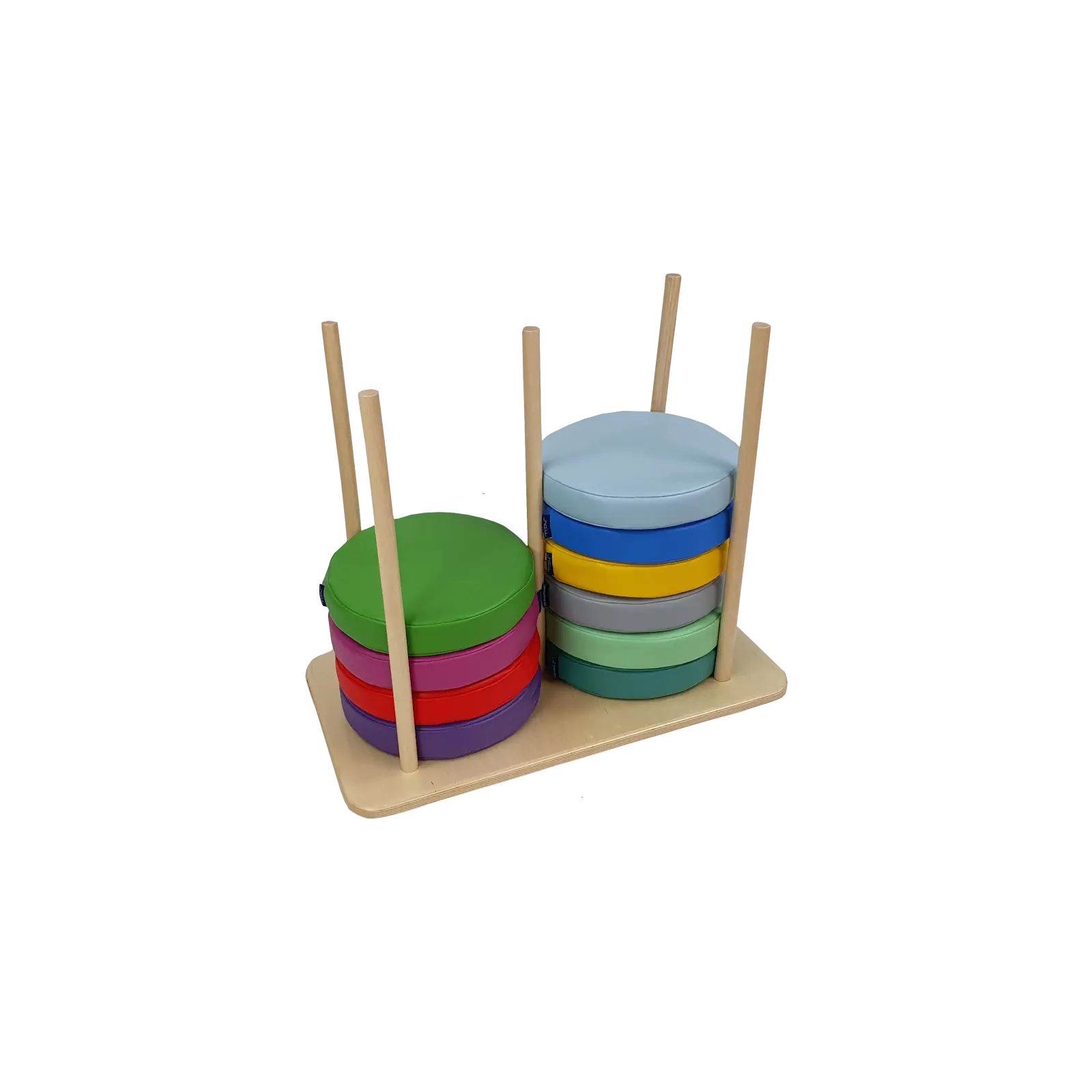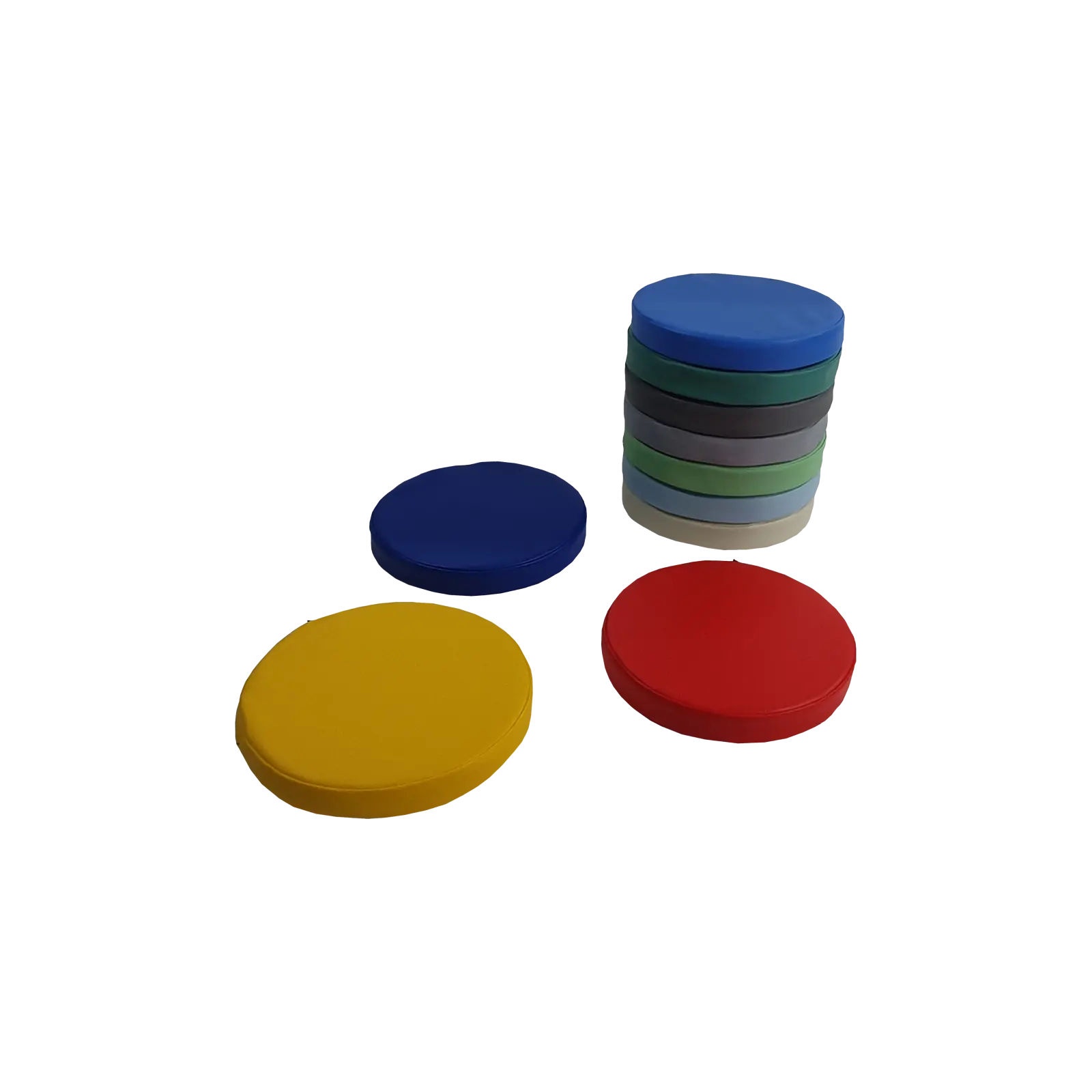 Zestaw klocków piankowych – Poduszki okrągłe to zestaw 25 wygodnych, kolorowych siedzisk podłogowych. Każda poduszka wypełniona jest pianką poliuretanową, która zapewnia wygodę siedzenia podczas zajęć, zabawy lub odpoczynku. Pokrowiec wykonany jest materiału najwyższej jakości z powłoką PCV przeznaczonego dla wyrobów medycznych, dzięki czemu jest bardzo łatwy w czyszczeniu oraz dezynfekcji. Produkt posiada certyfikację jako wyrób medyczny.