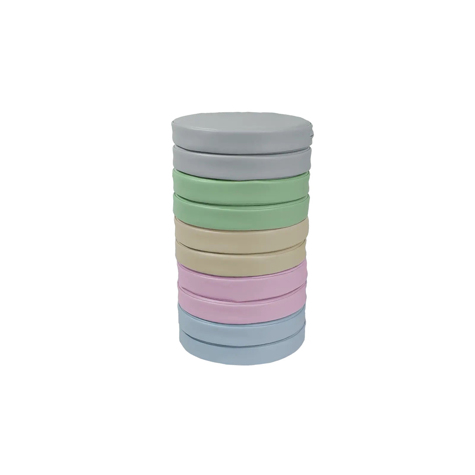Zestaw klocków piankowych – Poduszki okrągłe to zestaw 10 wygodnych, siedzisk podłogowych w pastelowych kolorach. Każda poduszka wypełniona jest pianką poliuretanową, która zapewnia wygodę siedzenia podczas zajęć, zabawy lub odpoczynku. Pokrowiec wykonany jest materiału najwyższej jakości z powłoką PCV przeznaczonego dla wyrobów medycznych, dzięki czemu jest bardzo łatwy w czyszczeniu oraz dezynfekcji. Produkt posiada certyfikację jako wyrób medyczny.