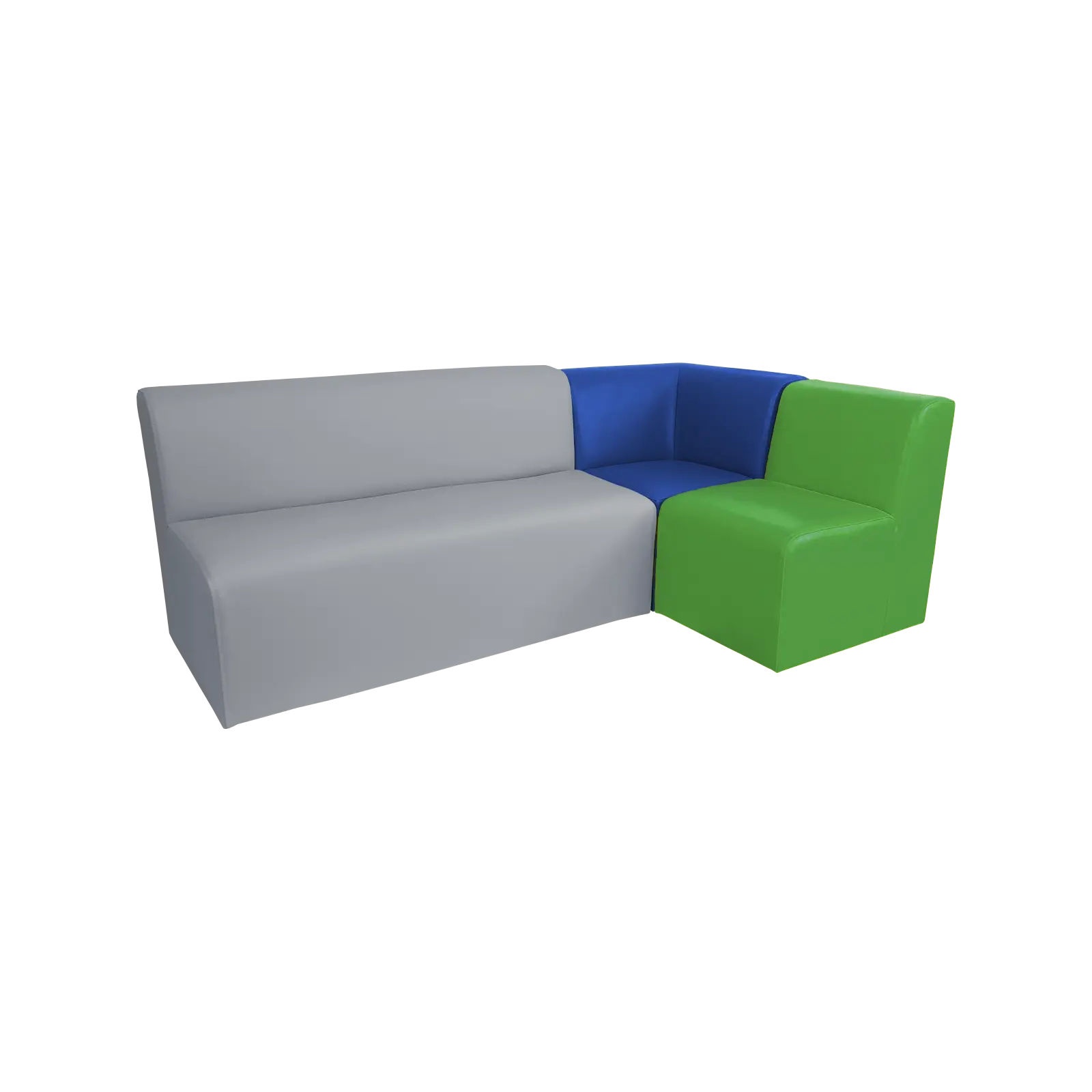 • Modułowa funkcjonalność – zestaw składa się z kanapy, fotela narożnego i fotela Modulo, które można łączyć w różne konfiguracje, tworząc bezpieczne kąciki wypoczynkowe dla dzieci.