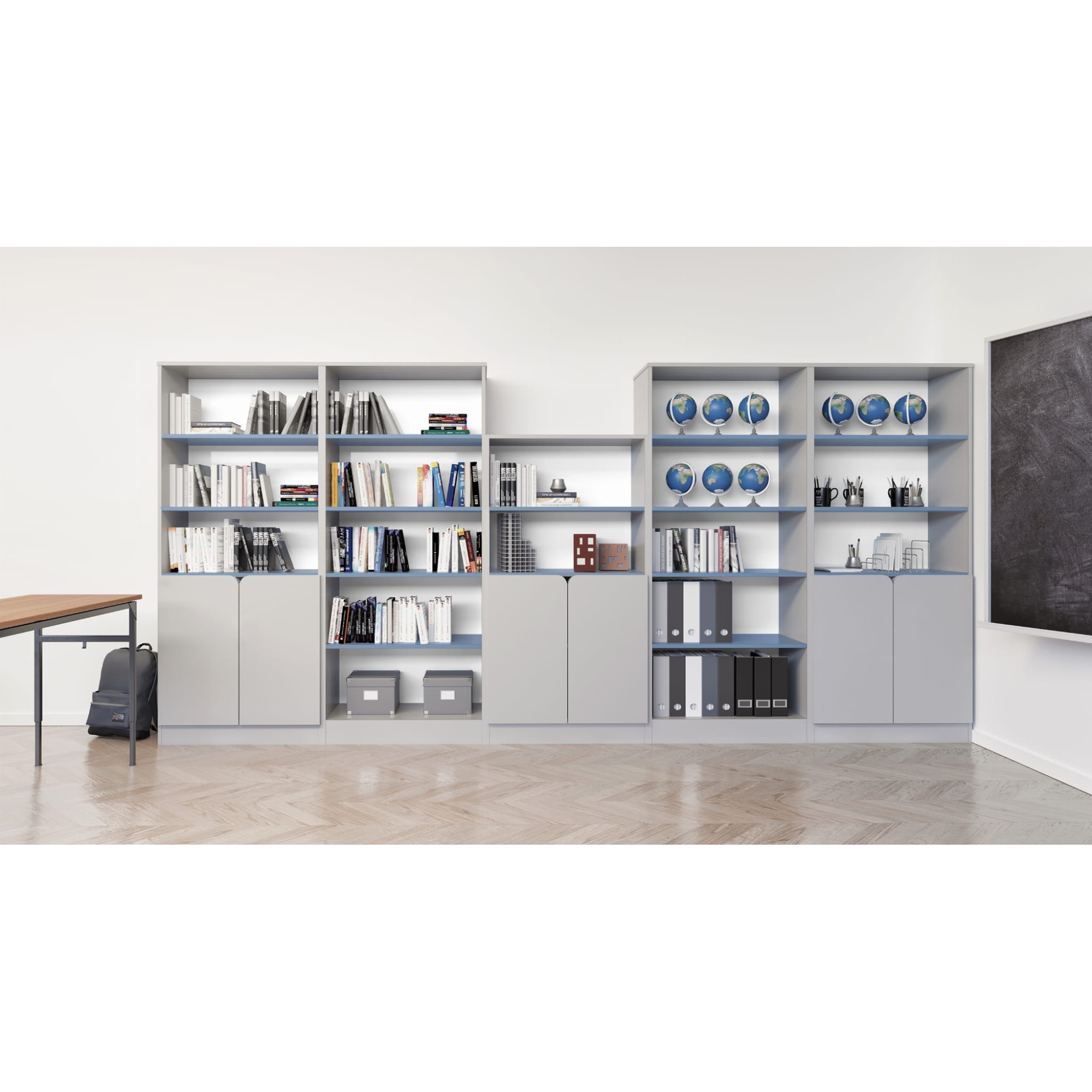 • Zestaw zawiera różne typy szafek z otwartymi i zamykanymi przestrzeniami, co zwiększa funkcjonalność przechowywania dokumentów i materiałów.