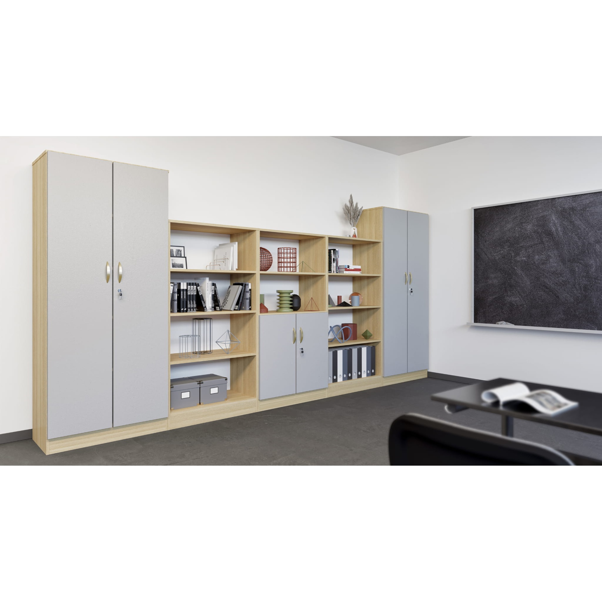 Zestaw szafek szkolnych nr 17 o długości 4 m i składający się z następujących mebli: